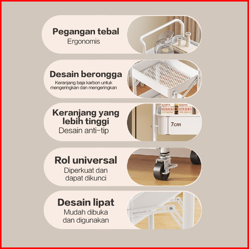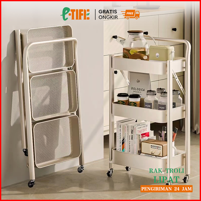 E-tife Rak Troli Besi Rak Susun Serbaguna Rak Kamar Mandi Rak Dapur Stainless Rak Roda Serbaguna