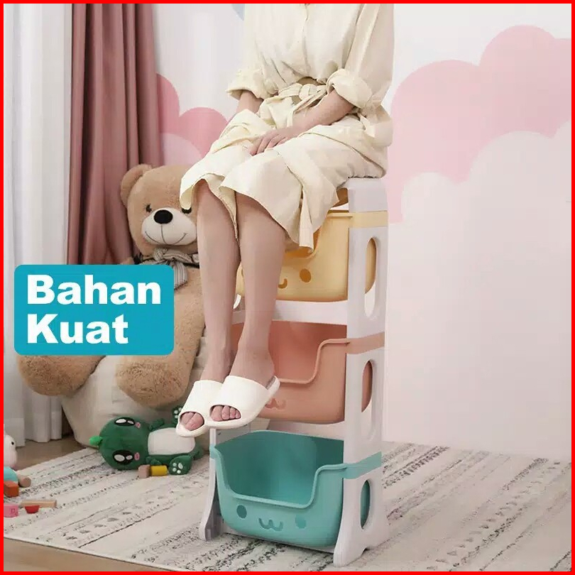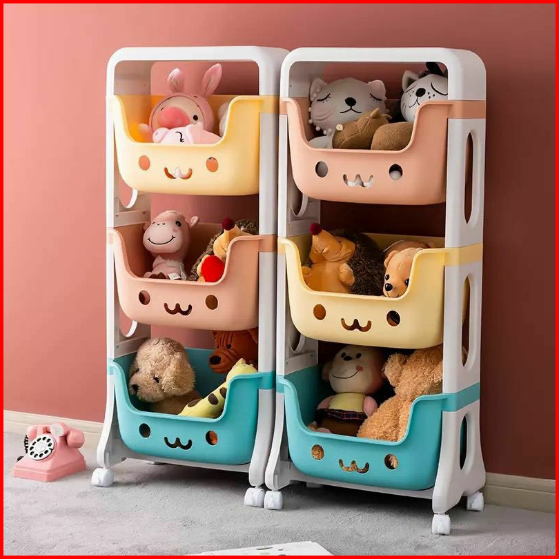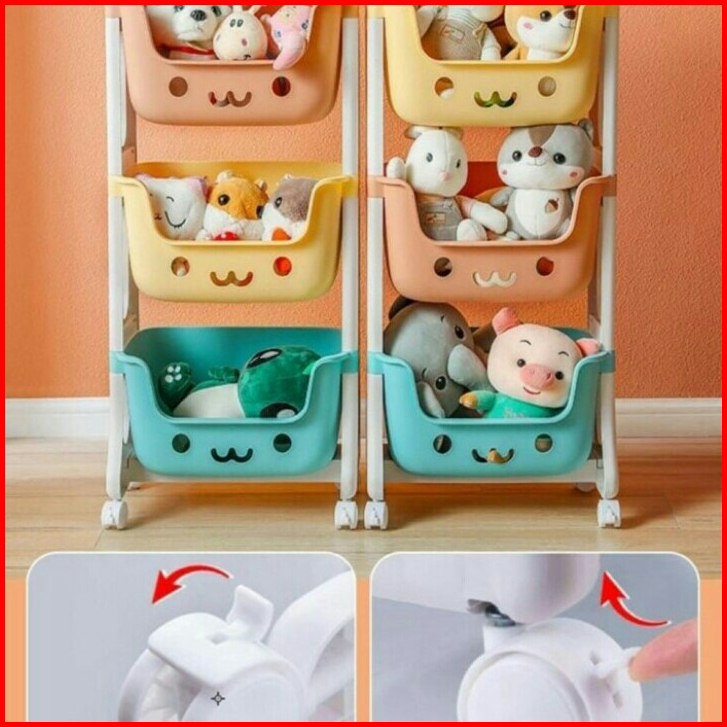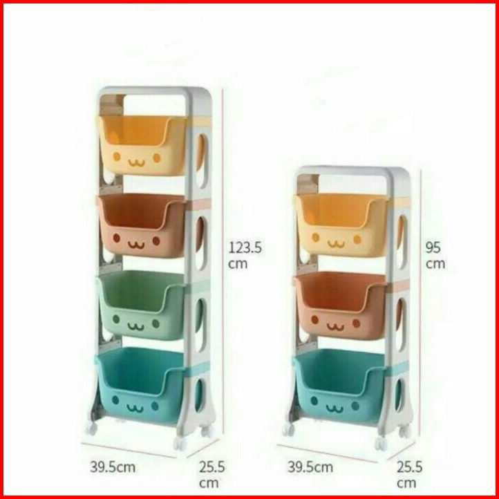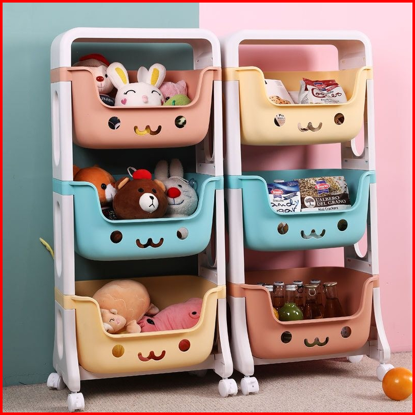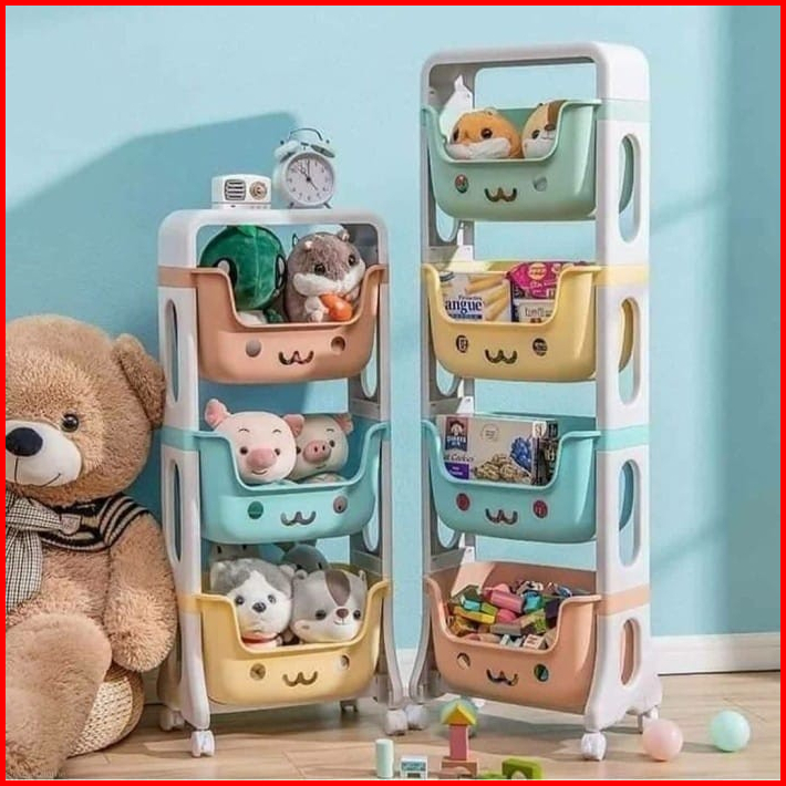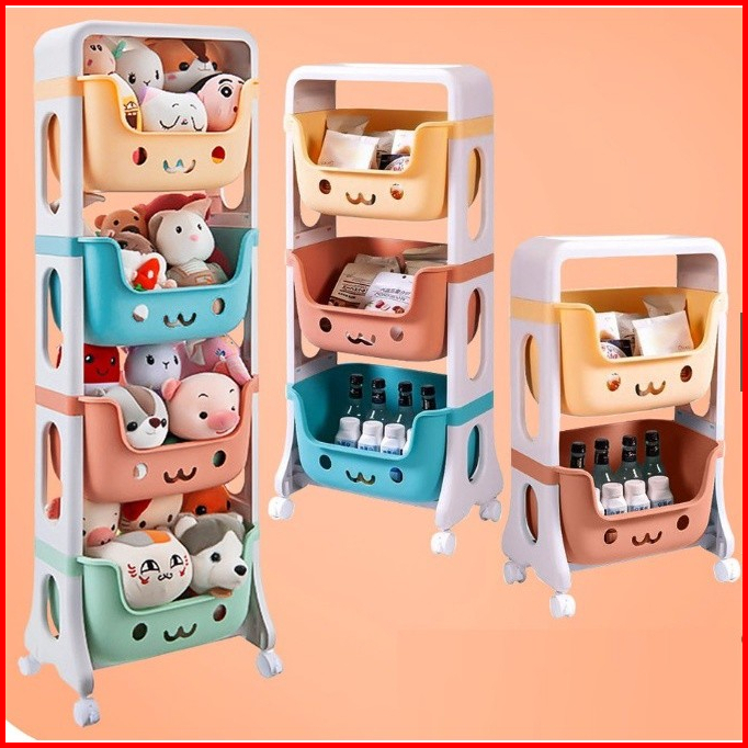 Rak Serbaguna Roda Tempat Penyimpanan Mainan Anak Rak Perlengkapan Bayi 3 Susun Dan 4 Susun