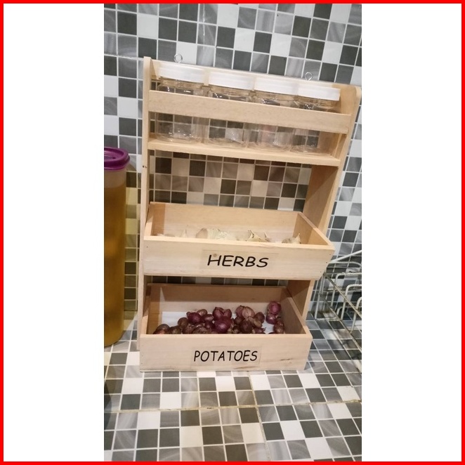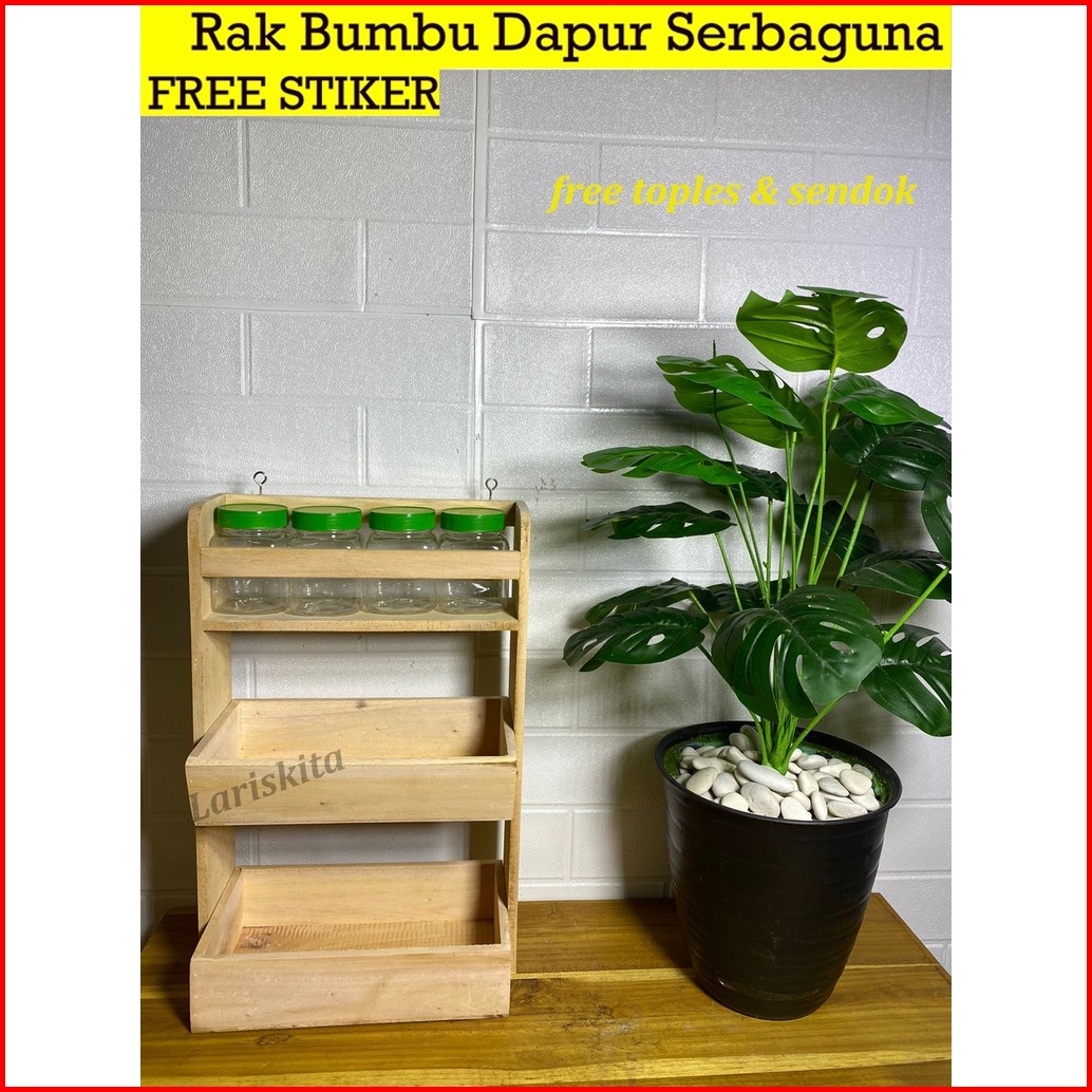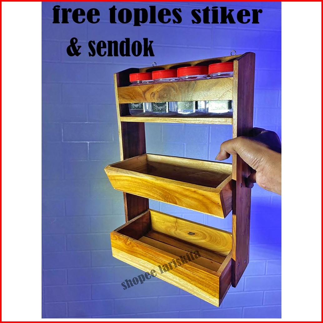 Free Stiker Dan Sendok Rak Kombinasi Rak Bawang Rak Bumbu 3 Susun Kayu Super Bonus Toples