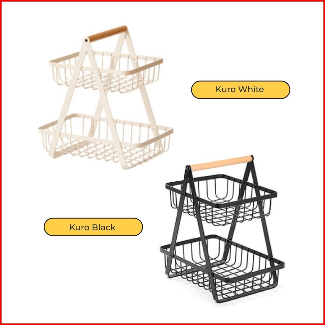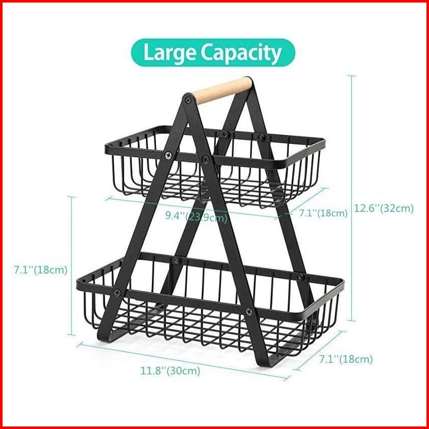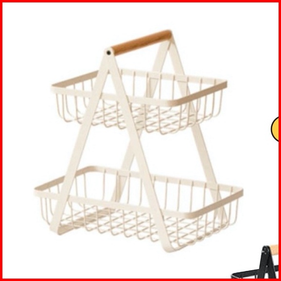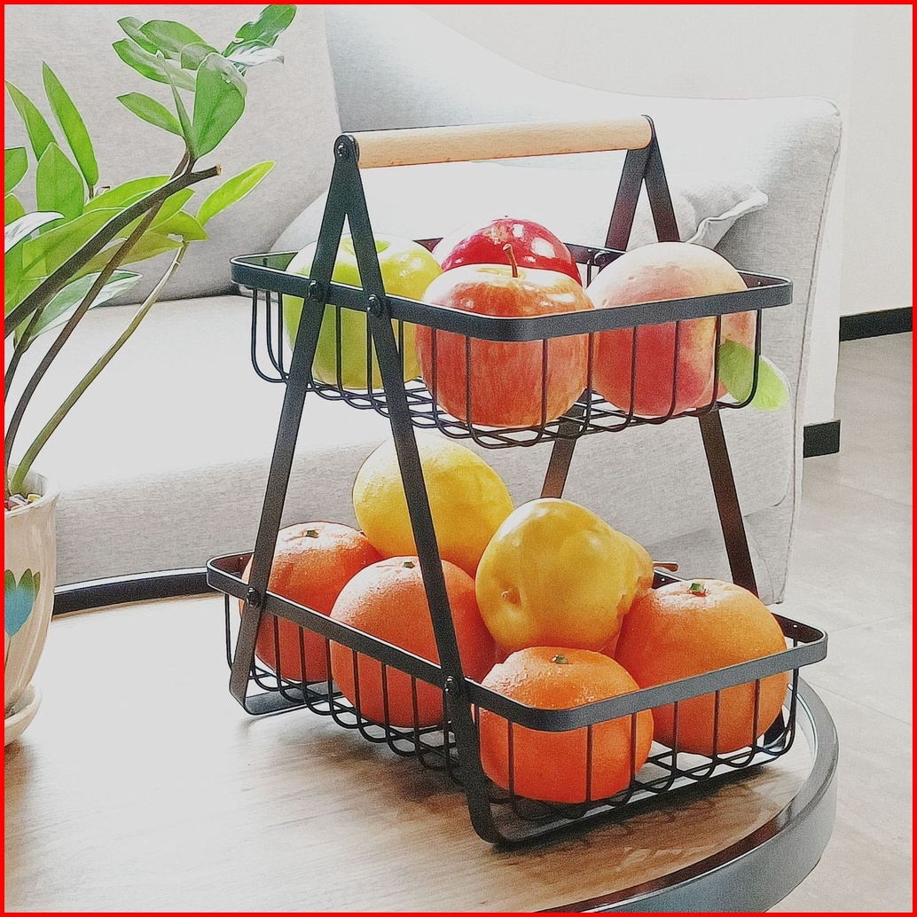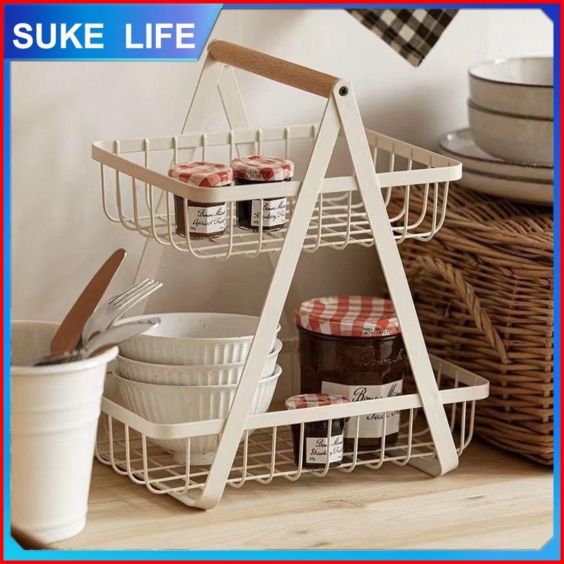 Rak Dapur Keranjang Rak Dapur Rak Buah Besi Rak Dapur Besi 2 Tingkat Dapur Kayu Serbaguna