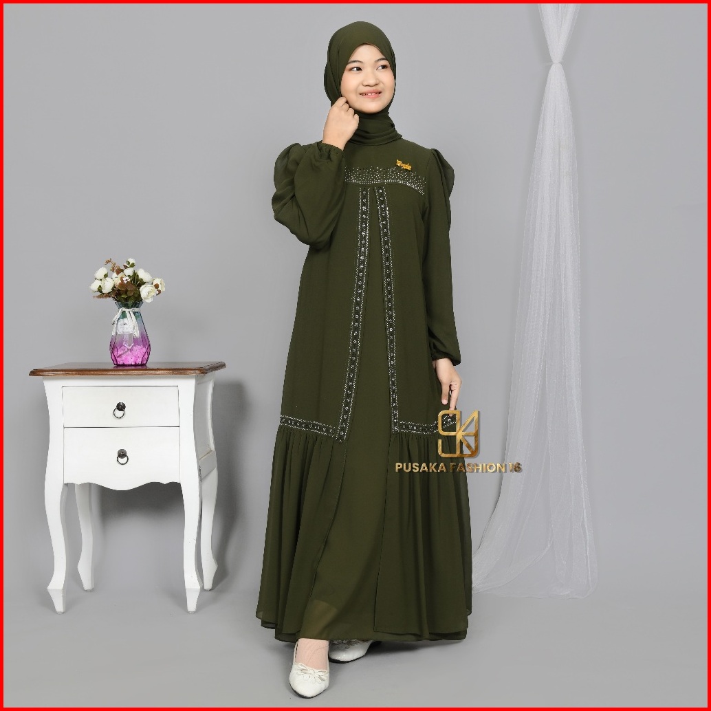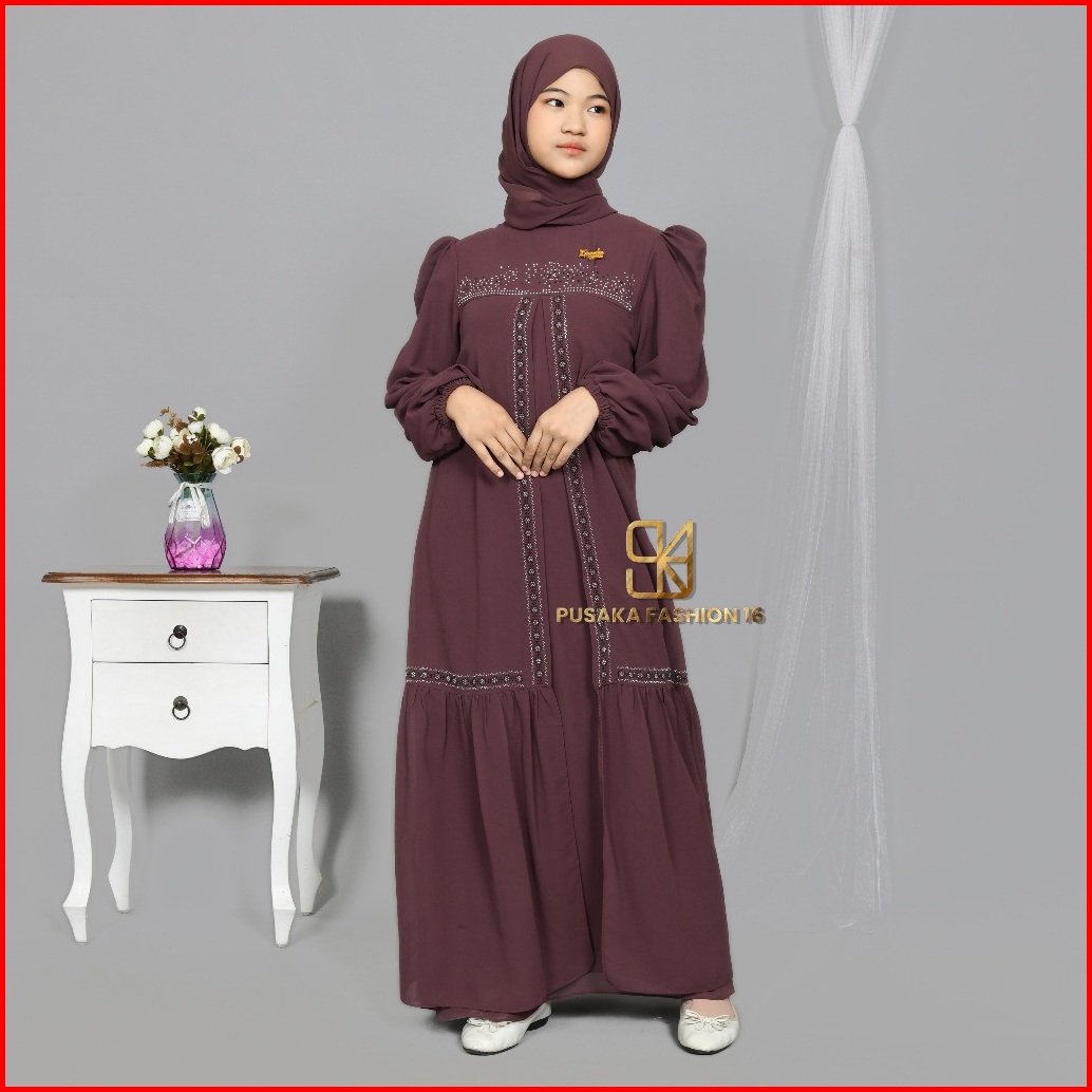 Gani4 Gamis Abaya Anak Remaja Tanggung Ceruti Babydoll Mix Payet Swarovski