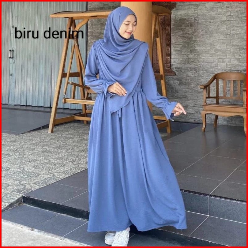 Alisa Gamis Dress Remaja Kondangan Kekinian Terbaru Gamis Dress Busui Bahan Crincle Airflow Size S M L Xl