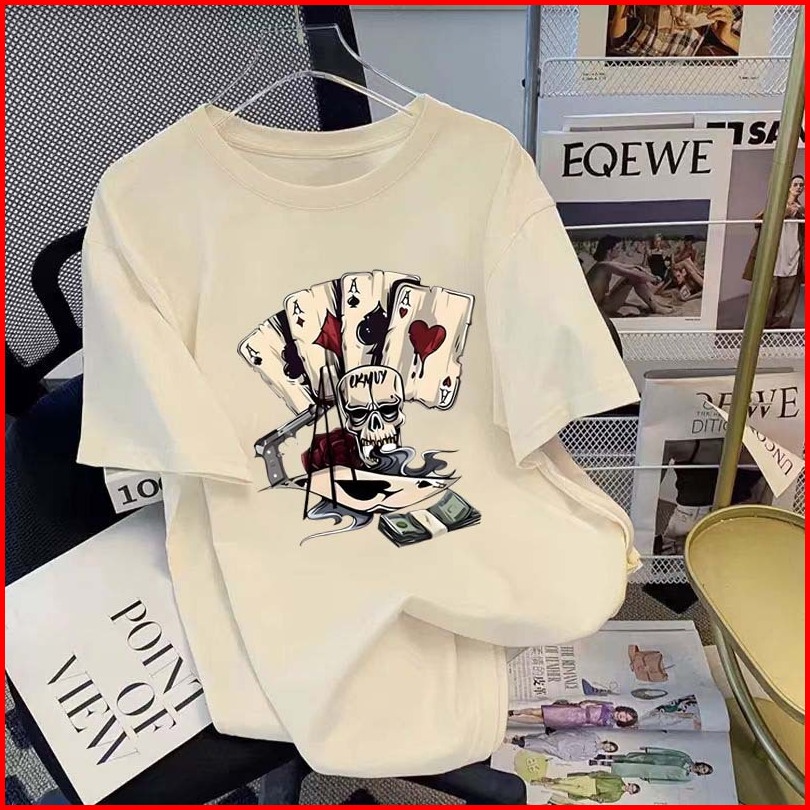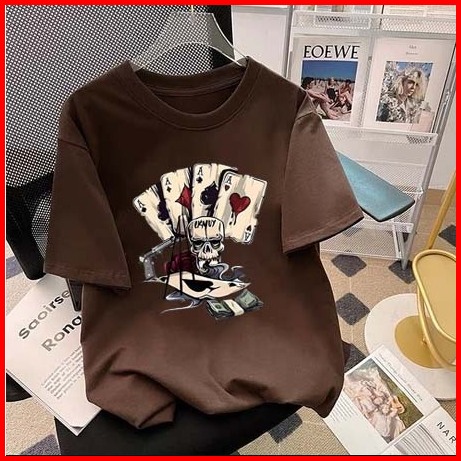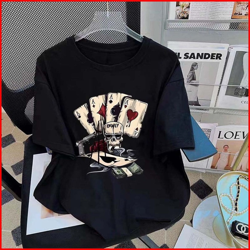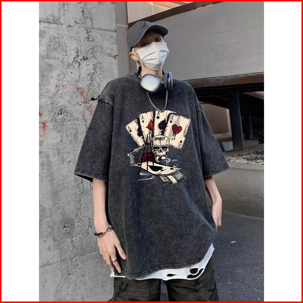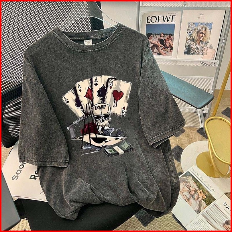 Kaus Cucian Tengkorak Poker Retro Jalanan Kaos Pria Terbaru 2024 Kaos Cotton Combed 30s Kaos Cowok Distro Original 100 B