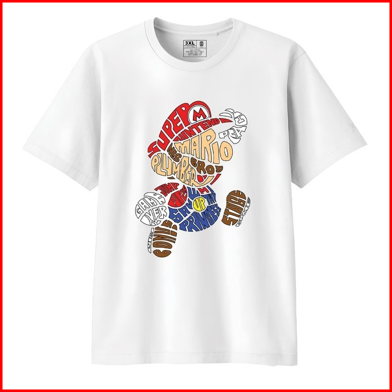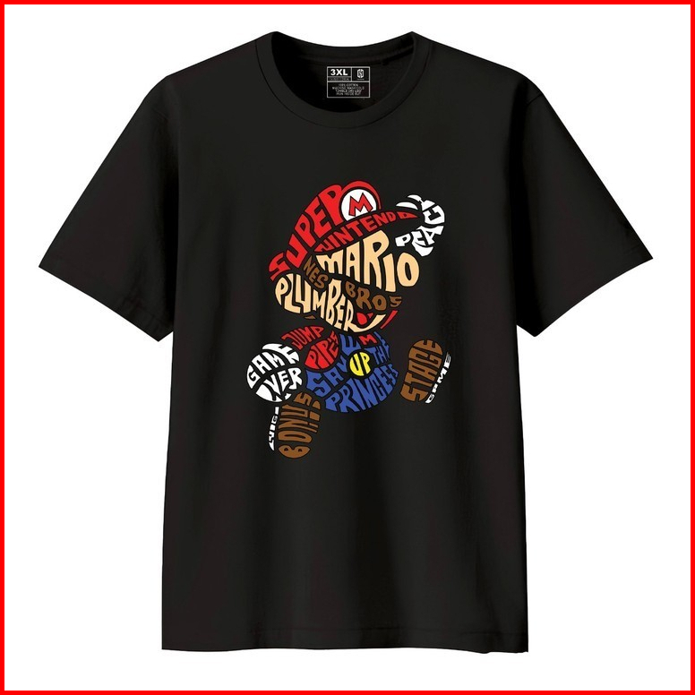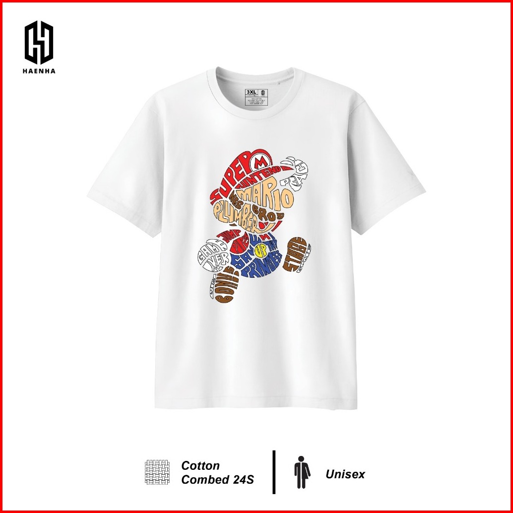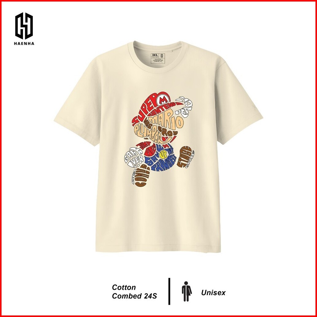 Haenha Mario Plumber Baju Kaos Distro - T Shirt Sablon Unisex Black White Sage Cream