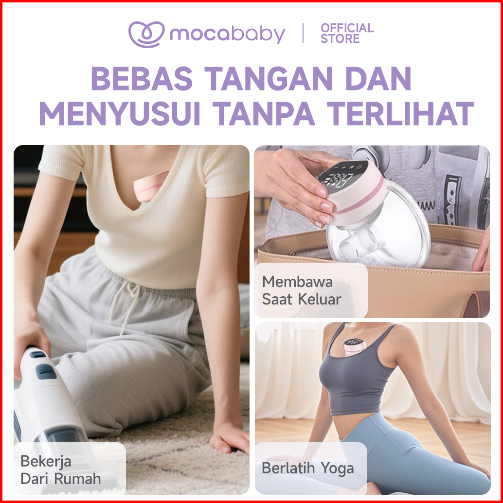 Mocababy Pompa Asi Elektrik Tanpa Rasa Sakit Wearable Hands Free Wireless Electric Hisap Kuat Breast Pump