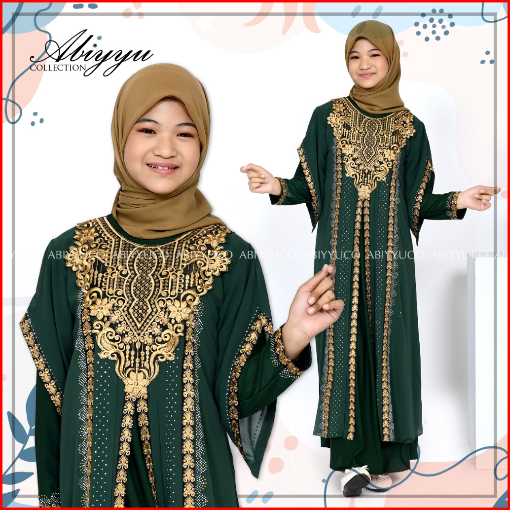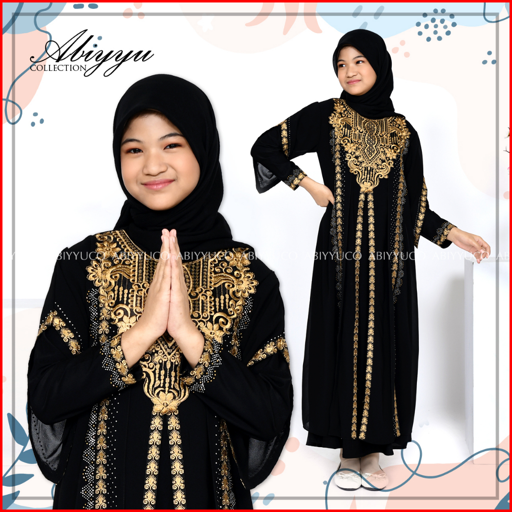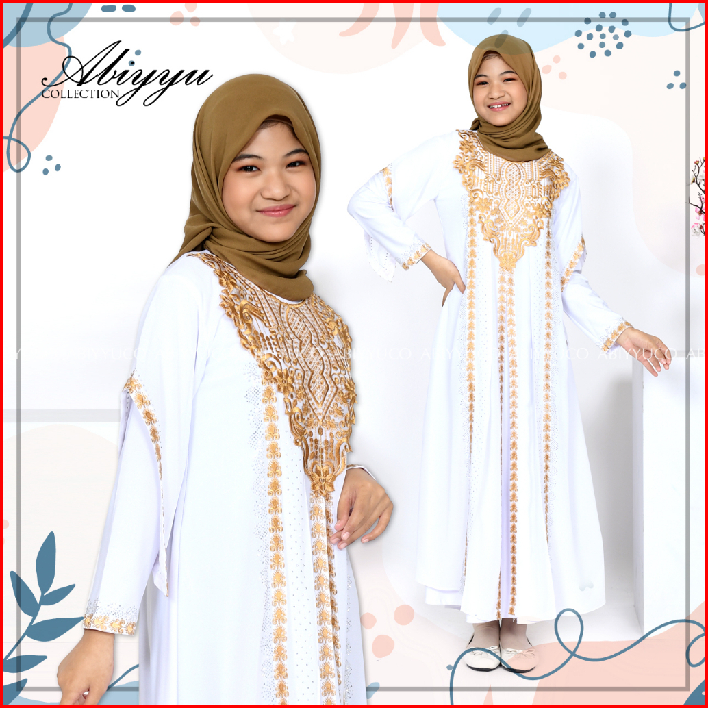 Abaya Turki Anak Perempuan Baju Gamis Turkey Remaja Tanggung Hitam Warna Putih Mewah Abiyyuco Ta9027a
