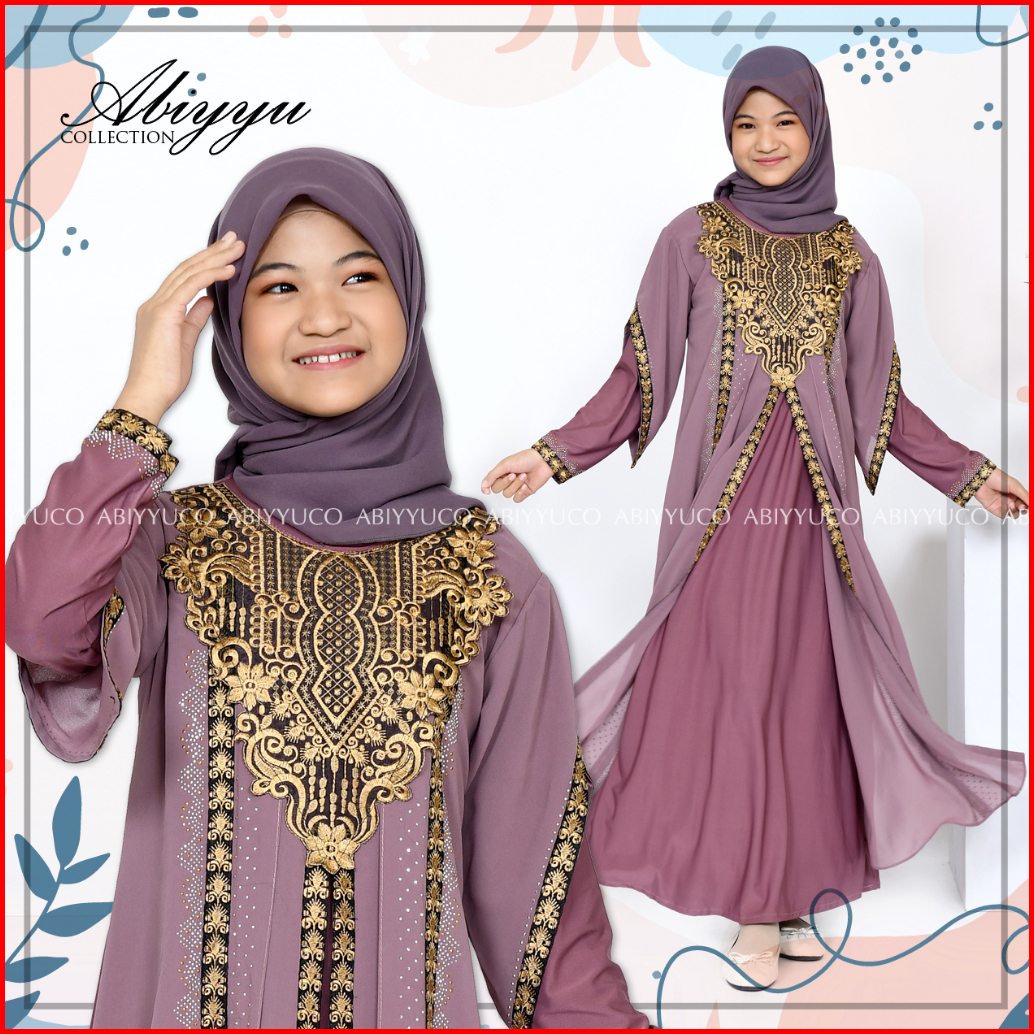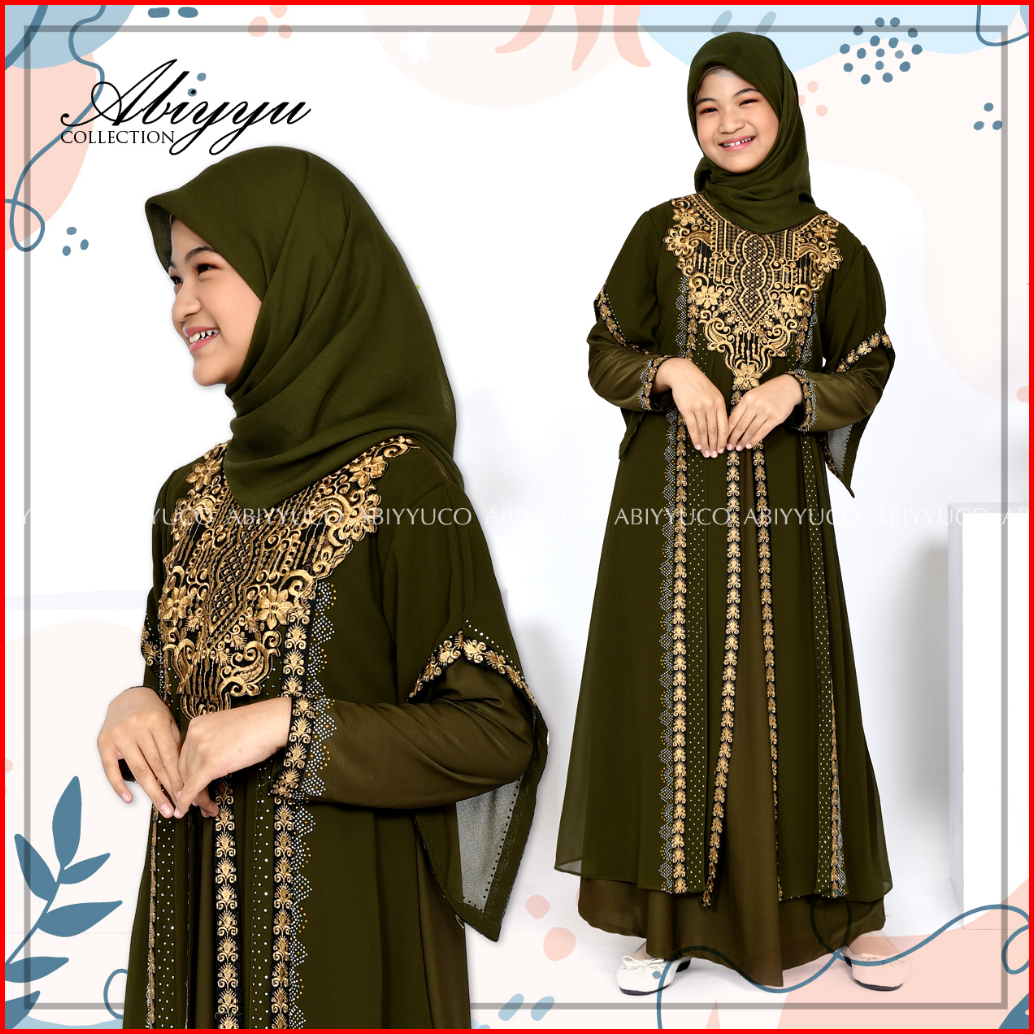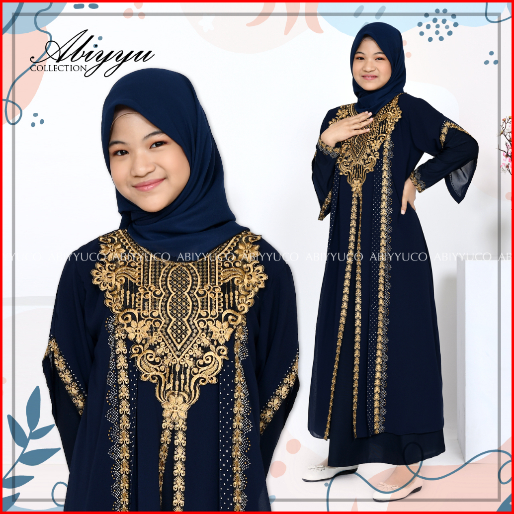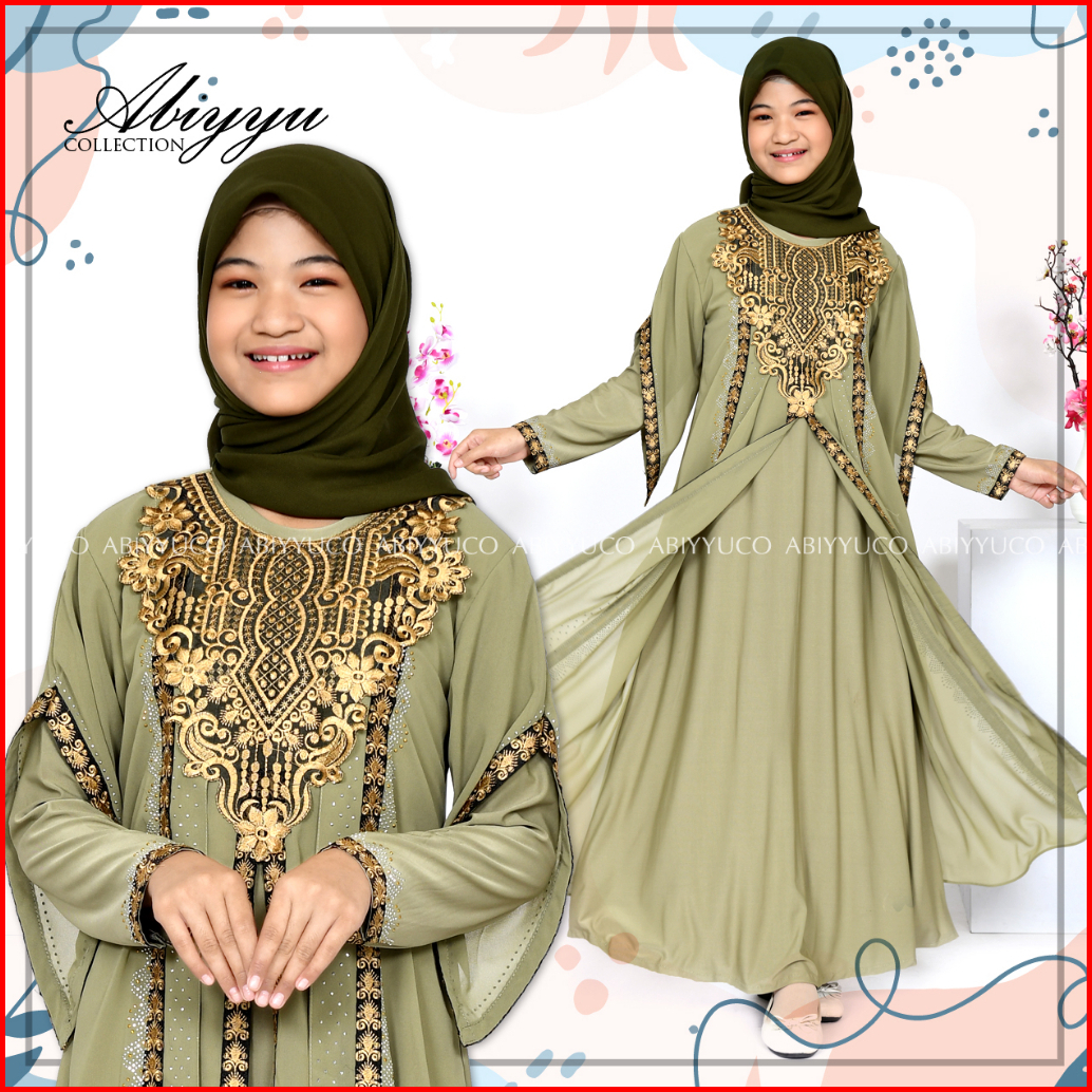 Abaya Turki Anak Perempuan Baju Gamis Turkey Remaja Tanggung Hitam Warna Putih Mewah Abiyyuco Ta9027a