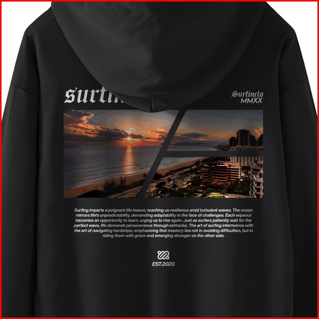 Surfinclo Hoodie Black Jumper Surfinlife By The Beach Style Bahan Katun Fleece