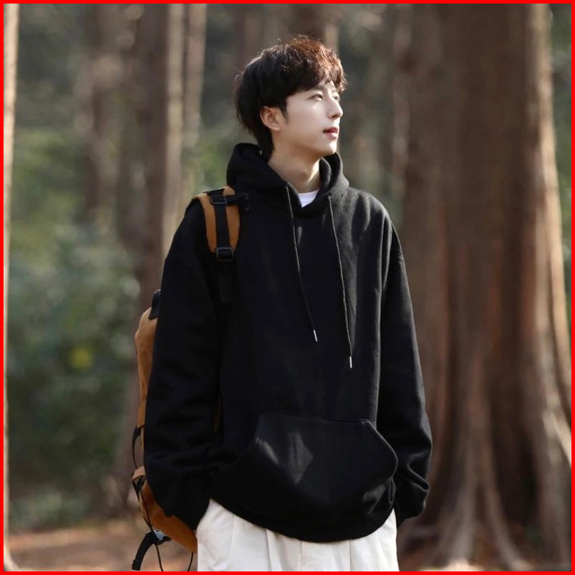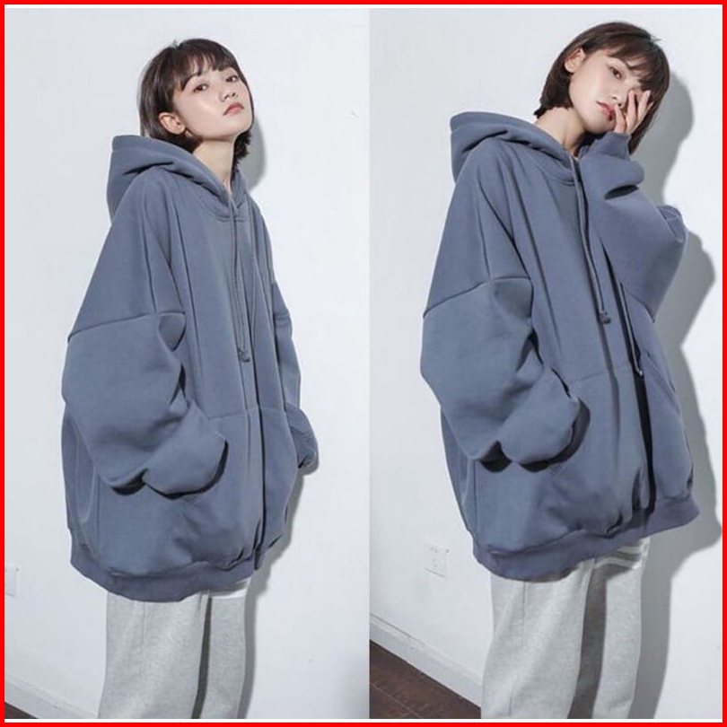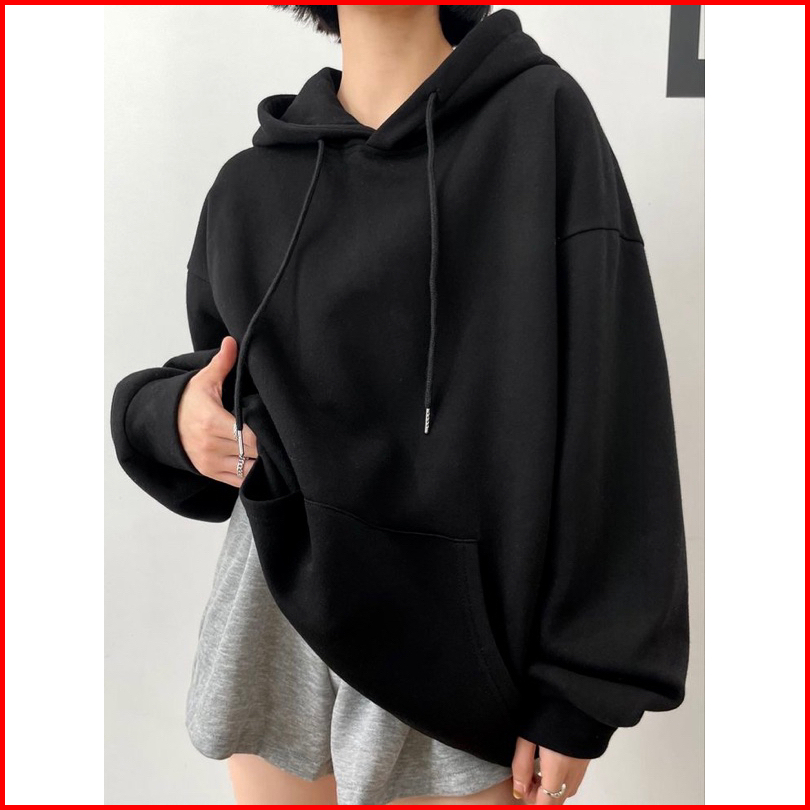 Luxoyez Bisa Sweater Hoodie Polos Pria Wanita Oversize Bahan Fleece Kupluk Jumbo I002