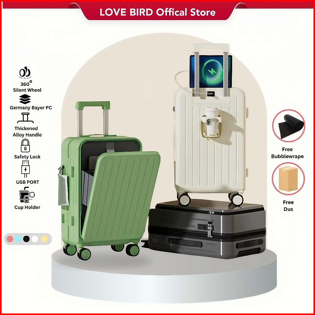Love Bird Koper Kabin Laptop Usb Koper 20 24 Inch Bottle Holder Tahan Banting Roda Berputar 360