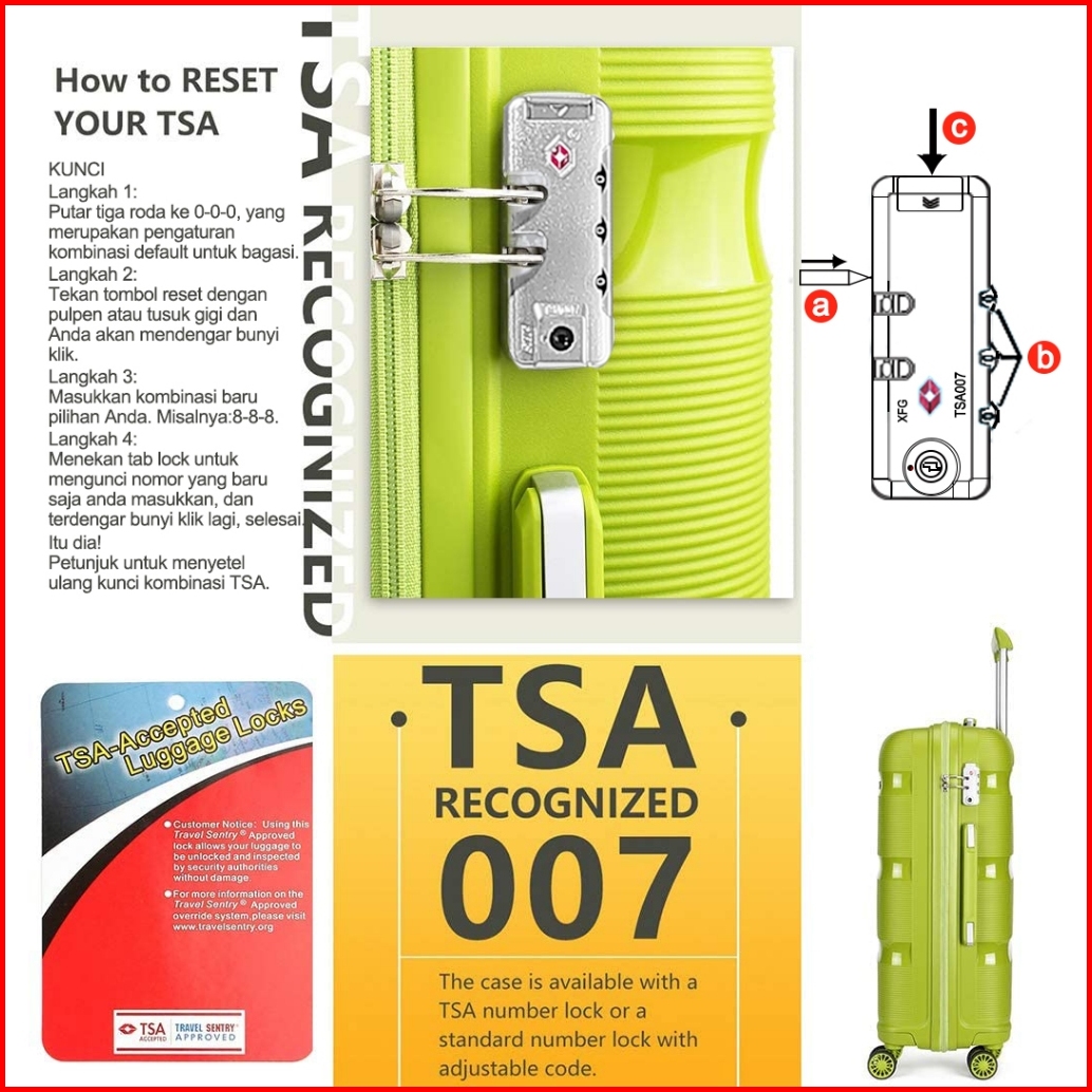 Sea Choice Koper Set 20 24 28 Inch Kabin Large Bagasi Travel Tas Pp Hardcase Lightweight Tsa Lock