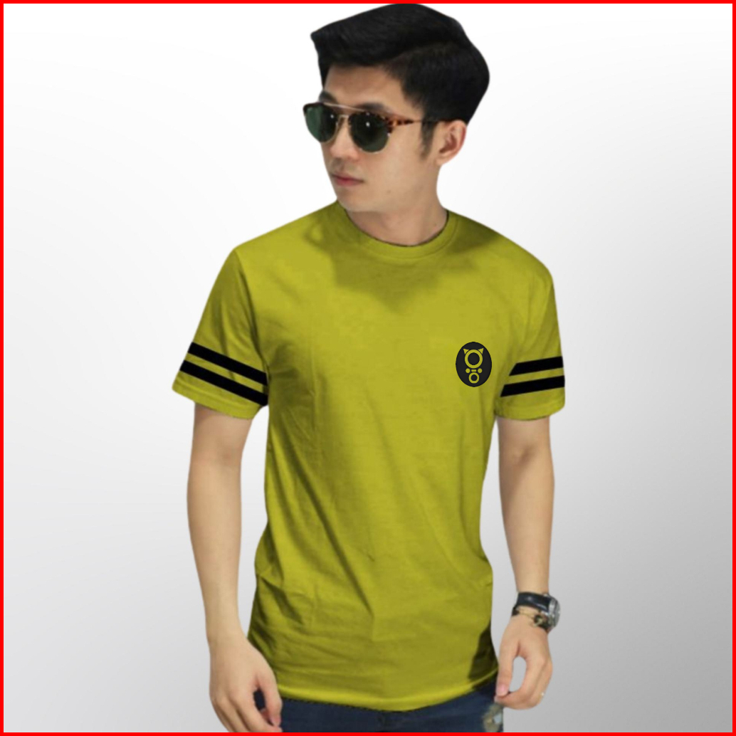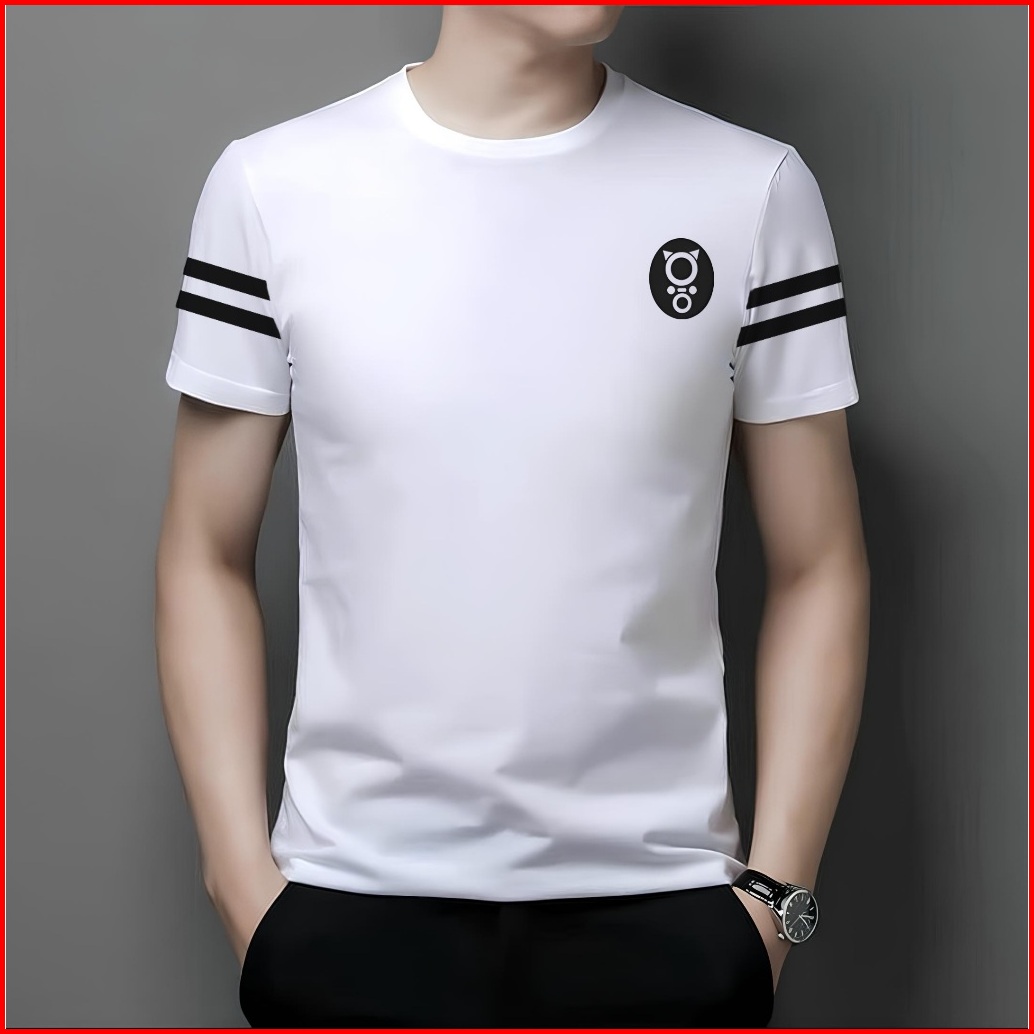Bigzero Kaos Distro Pria Baju Cowok Dewasa Lengan Pendek Bahan Katun Combed 30s Putih Strip M-3xl