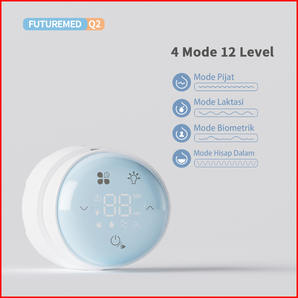 Futuremed 900mah Pompa Asi Elektrik Portabel Hisap Kuat Breast Pump Fungsi Lampu Malambpa Free Q2