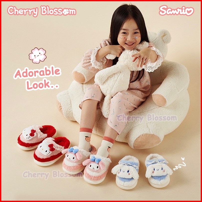 Ready Cherryblossom Mimi Fluffu - Sandal Anak Import Original Sanrio Cinnamon Roll My Melody Empuk Slip Rumah Premium