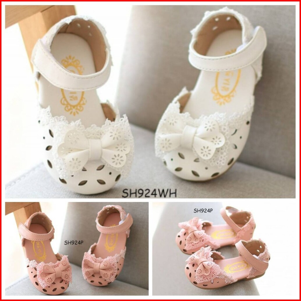 Spt140 Sepatu Sandal Anak Balita Putih Pink Pita Girl Cute Walker Shoes