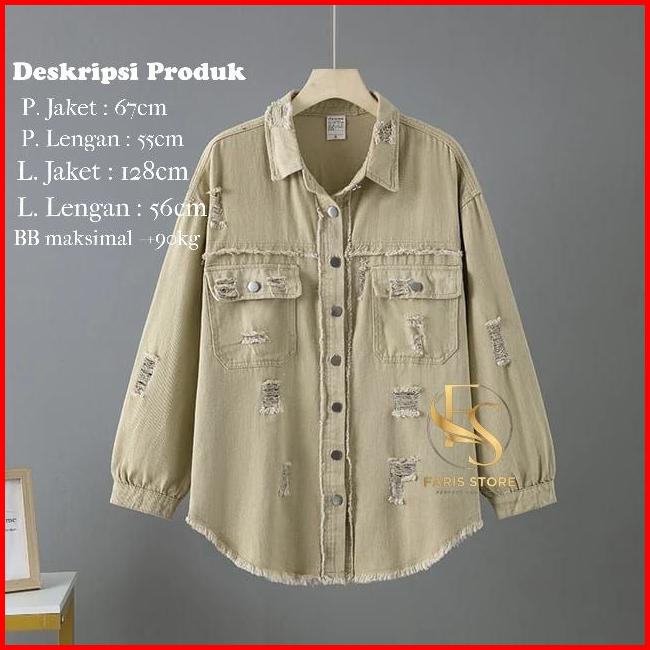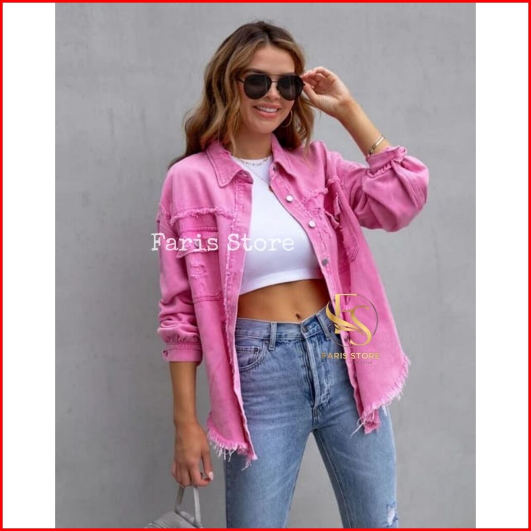 Jaket Jeans Oversize Sobek Rawis Jumbo Wanita Terbaru Kekinian Korean Style