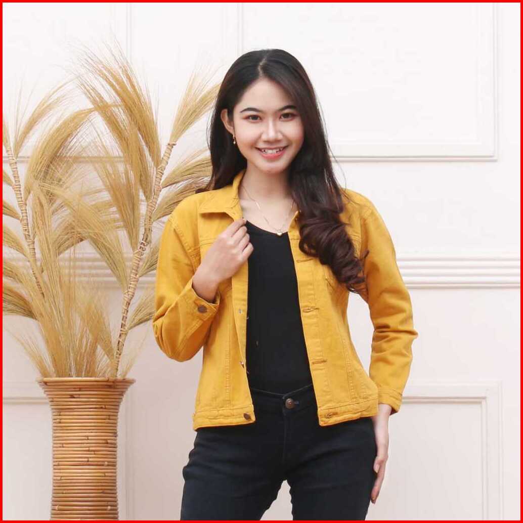 Jaket Jeans Wanita Jaket Biondy Cropty Korean Style Kekinian Ukuran Standar