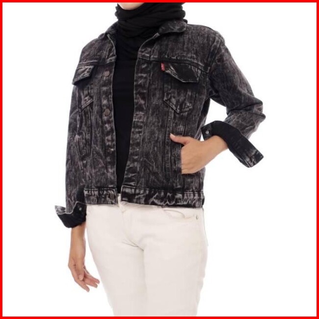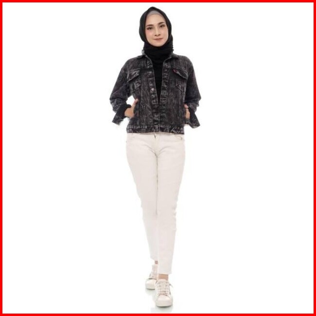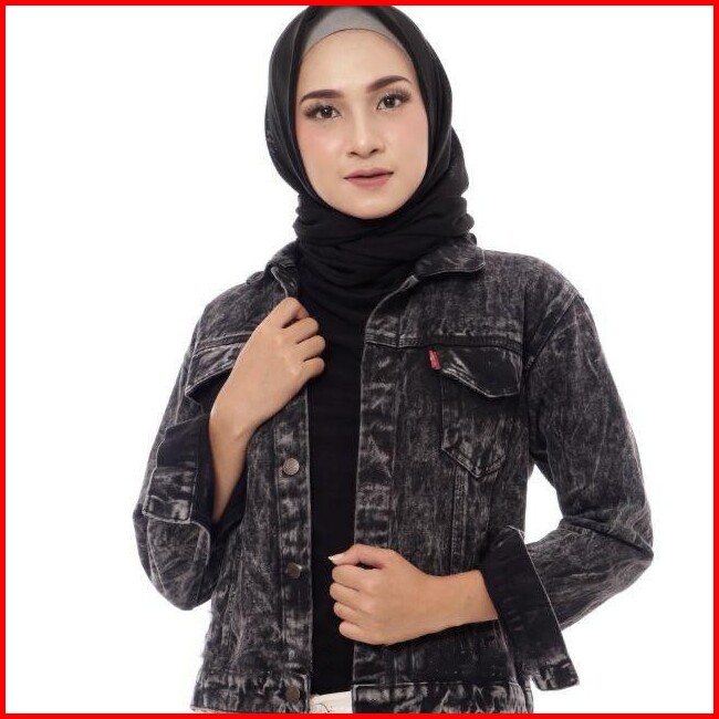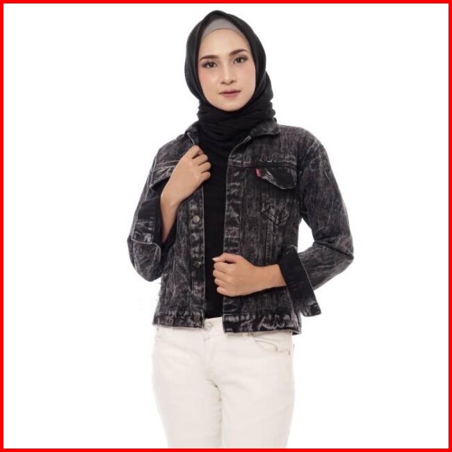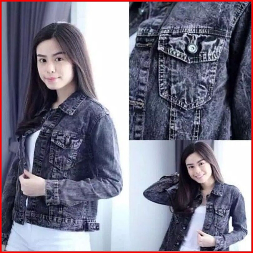 Jaket Jeans Denim Slimfit Wanita Jaket Jeans Croop Cewe - Balck Acid Wash