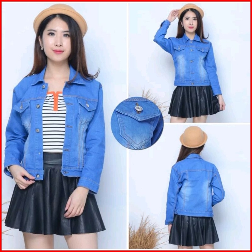 Jaket Jeans Wanita Kancing Full Ice Blue Navy