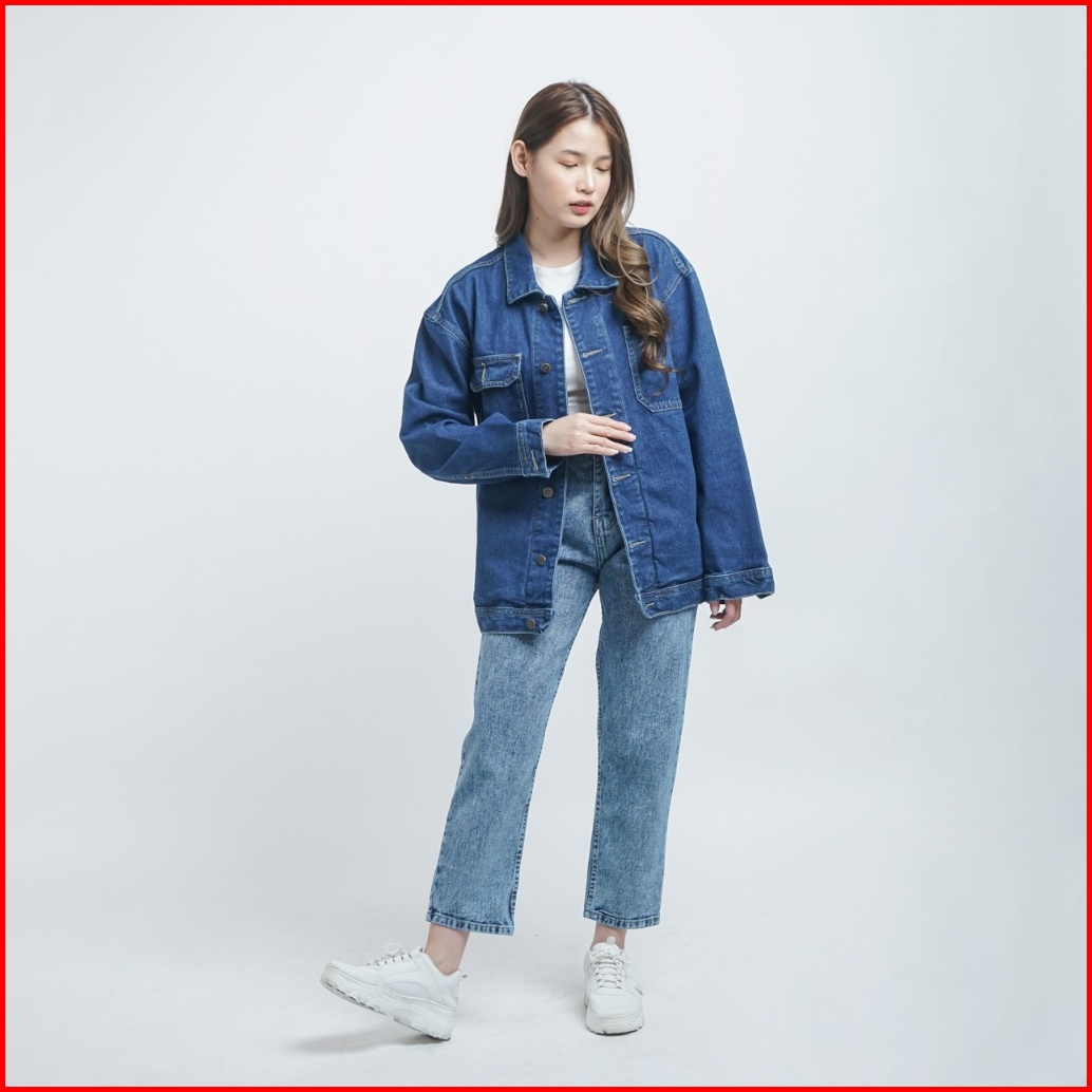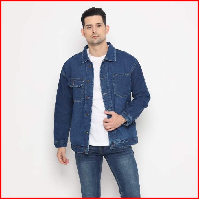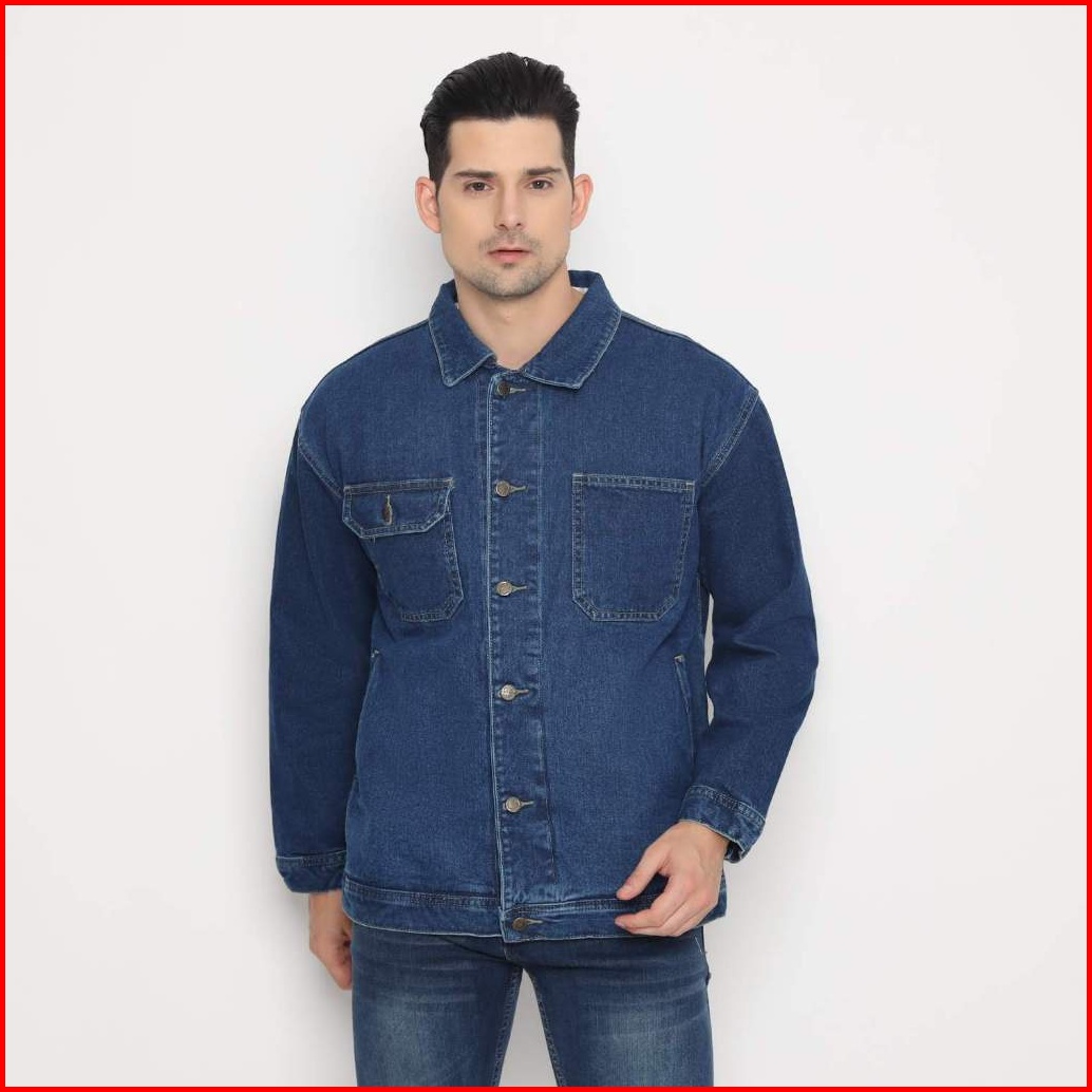 Esrocte Jaket Denim Jeans Unisex Reguler Lengan Panjang Pt8 - Navy Washed S-xl