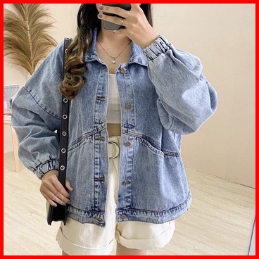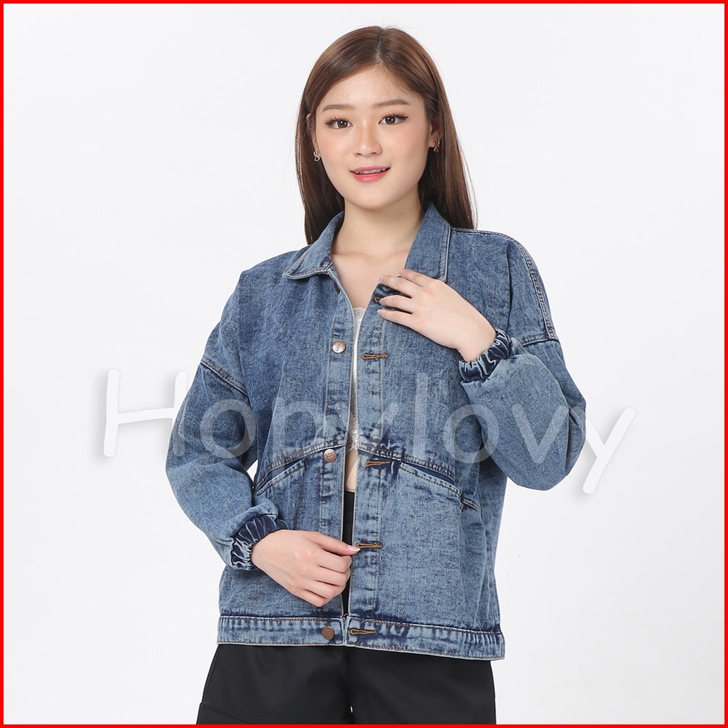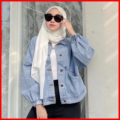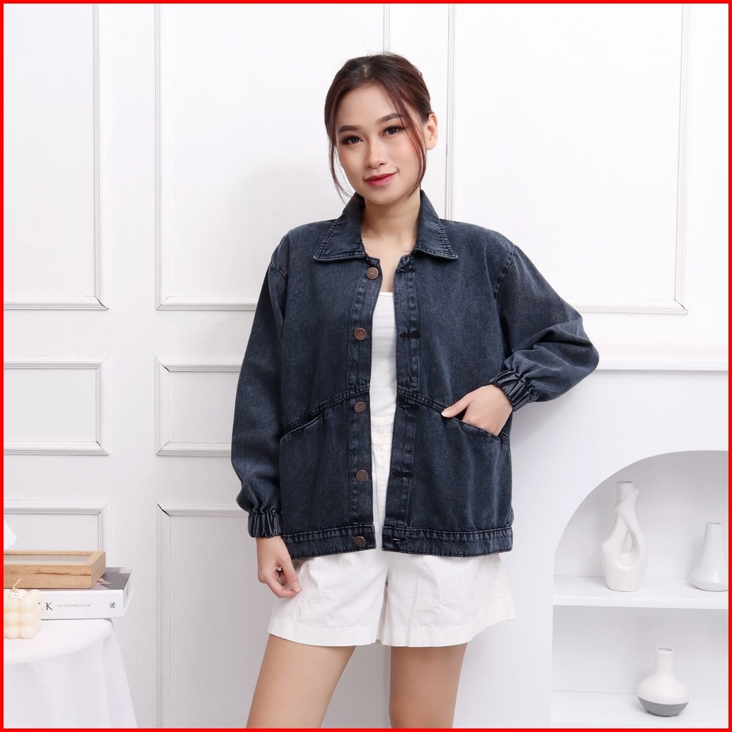 Jaket Jeans Tebal Oversize Wanita Lengan Manset Sava Carbera Jaket Jeans Wanita Hype Tangan Karet