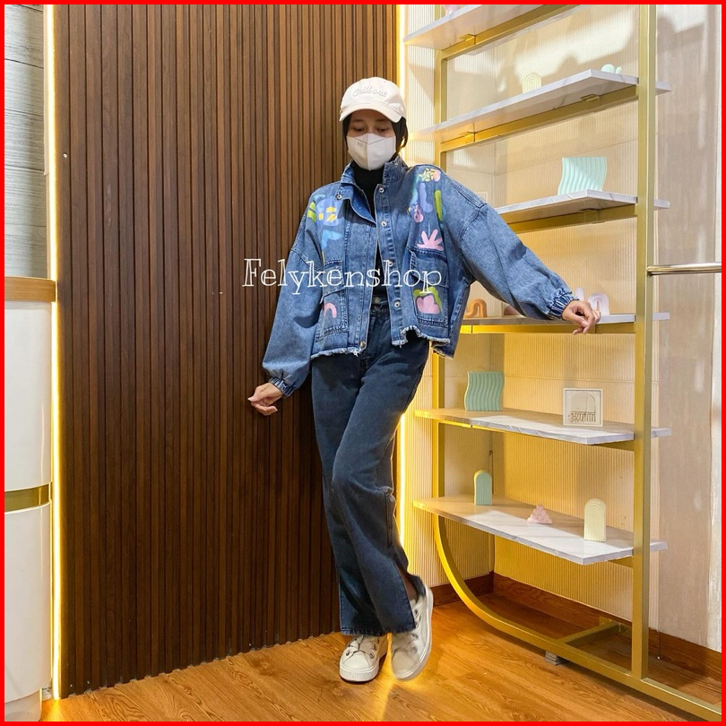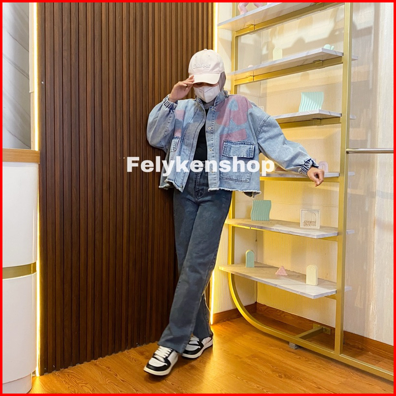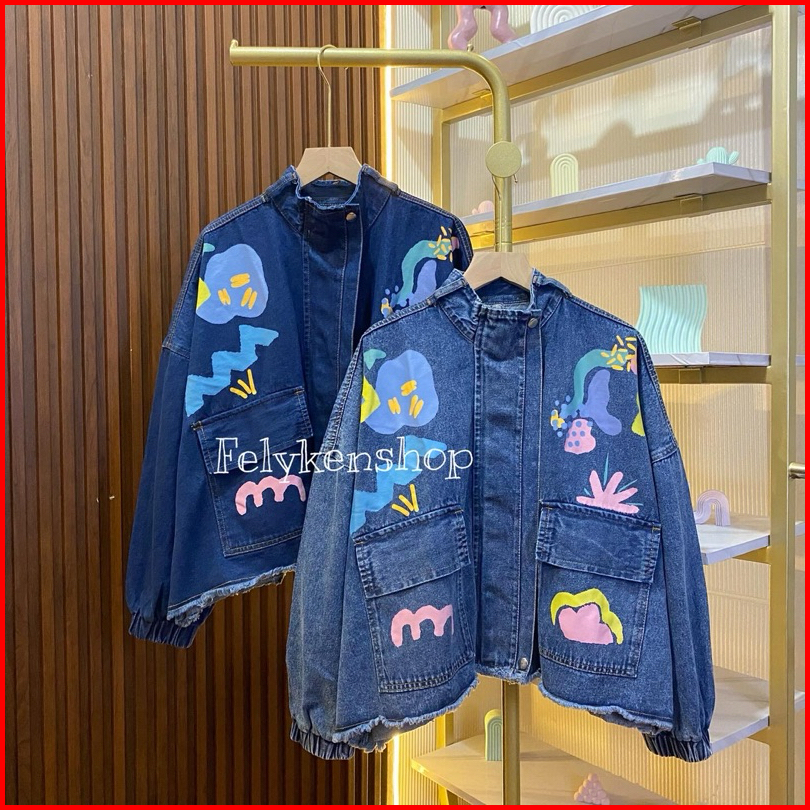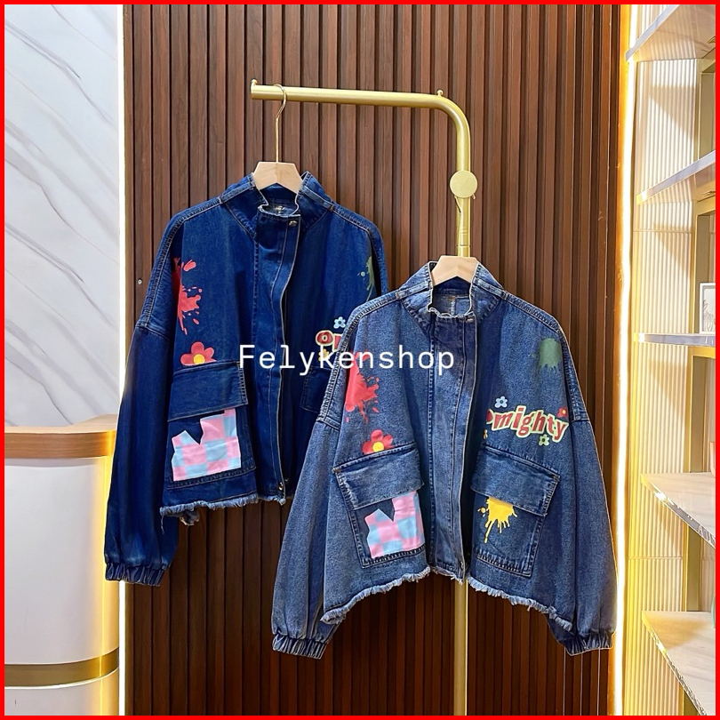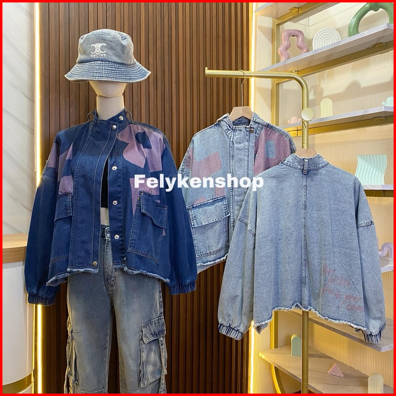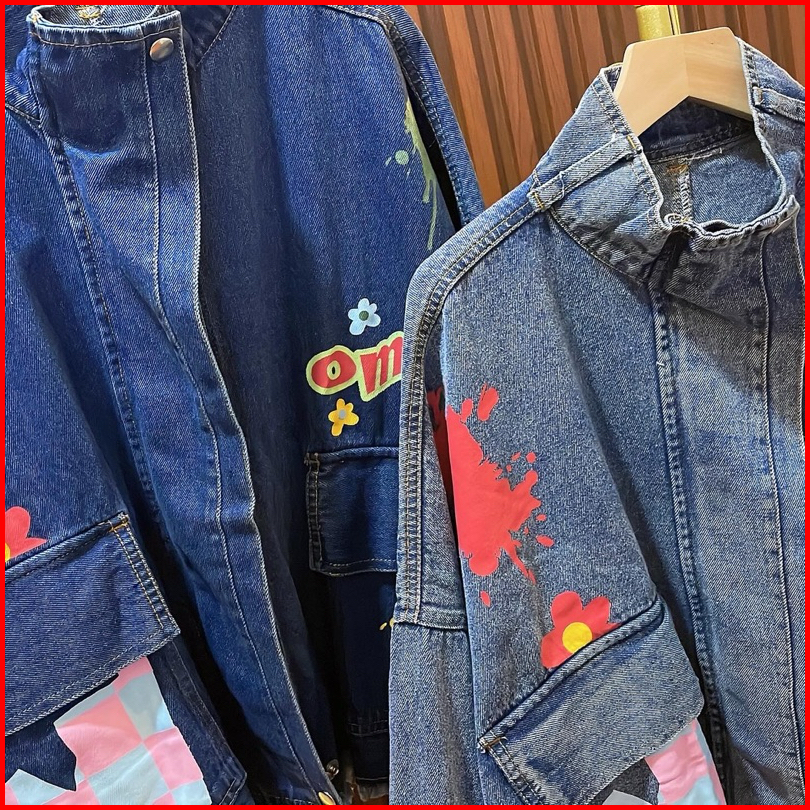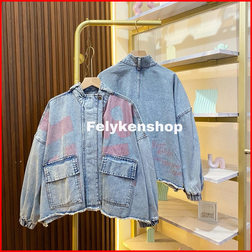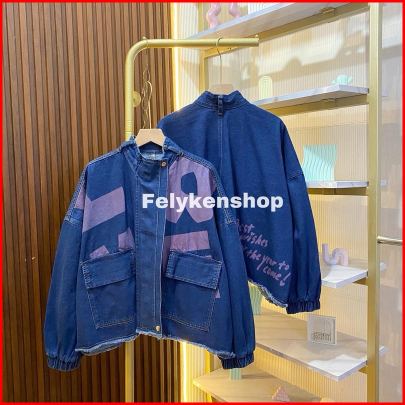 Oversize Jaket Jeans Jumbo Sablon Pocket Best Wishes Kode Dm