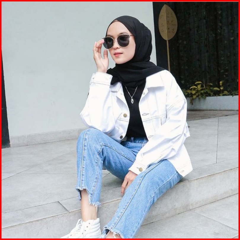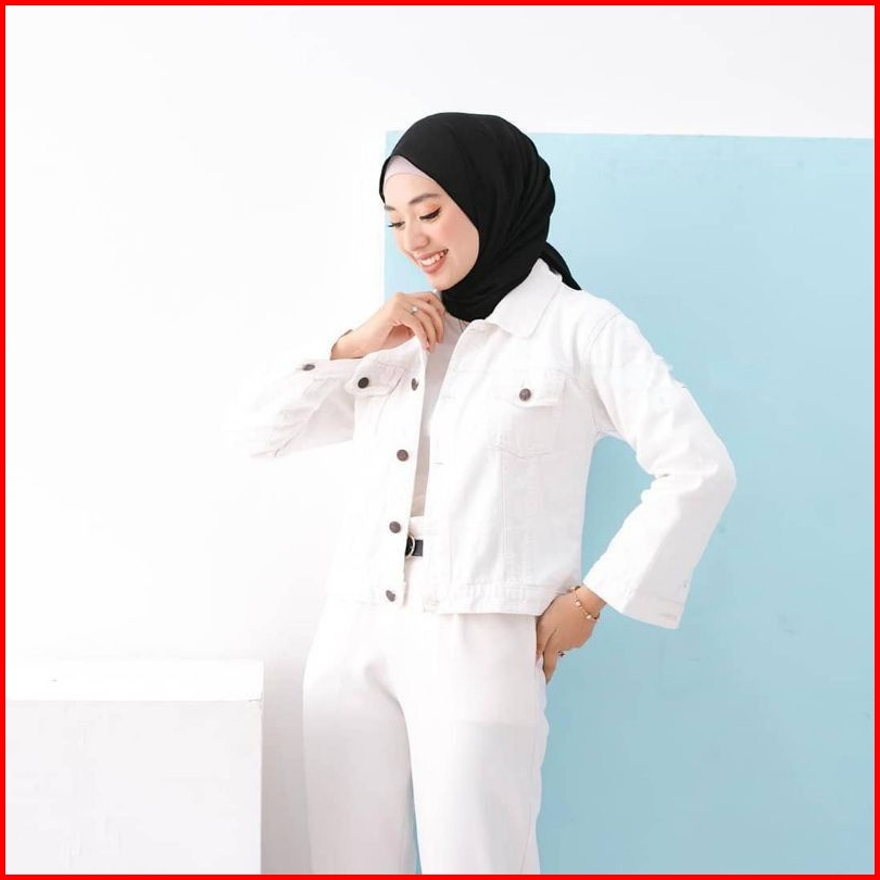 Trembis Jaket Jeans Wanita Jaket Putih Witney
