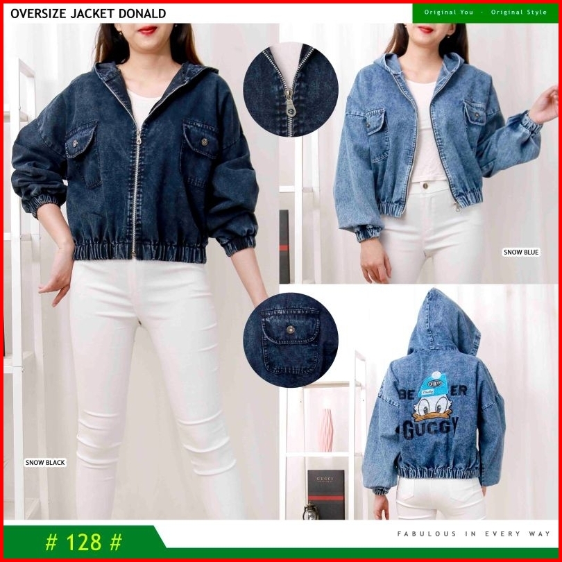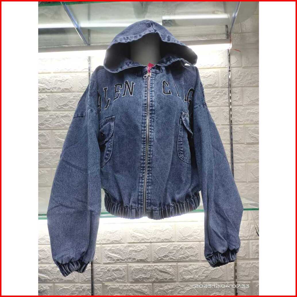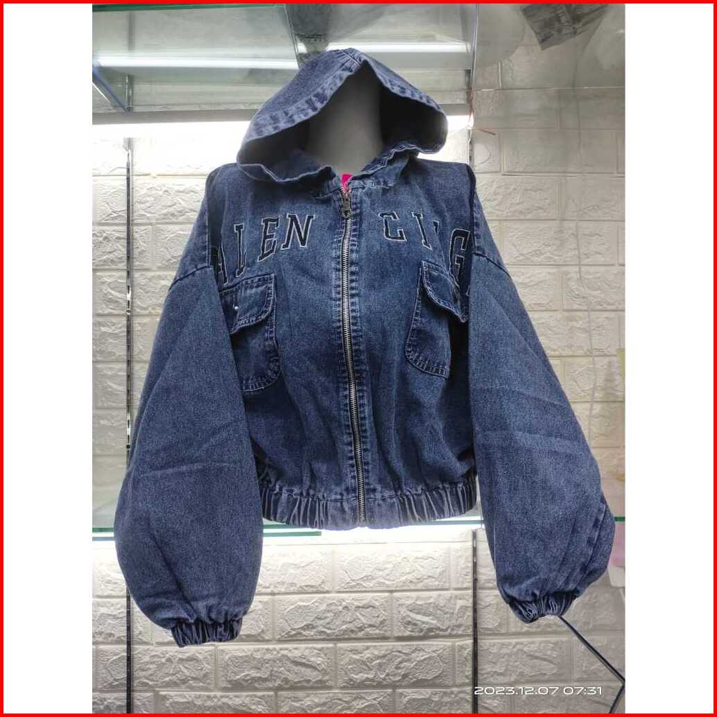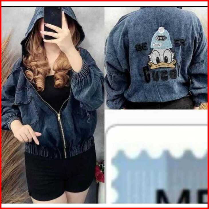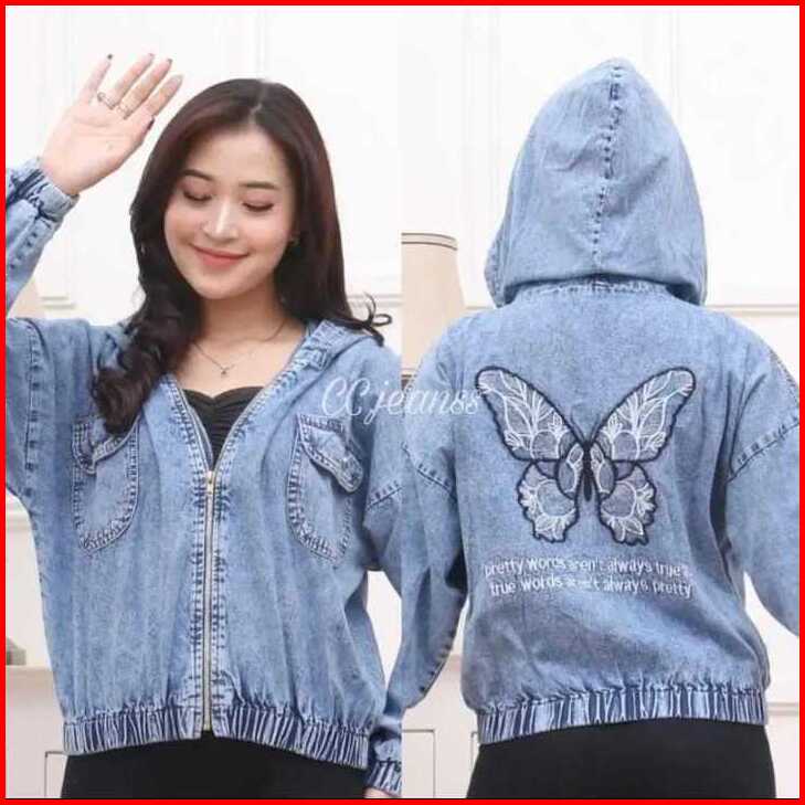 Komo Jaket Jeans Kupluk Jumbo Wanita Bordiran