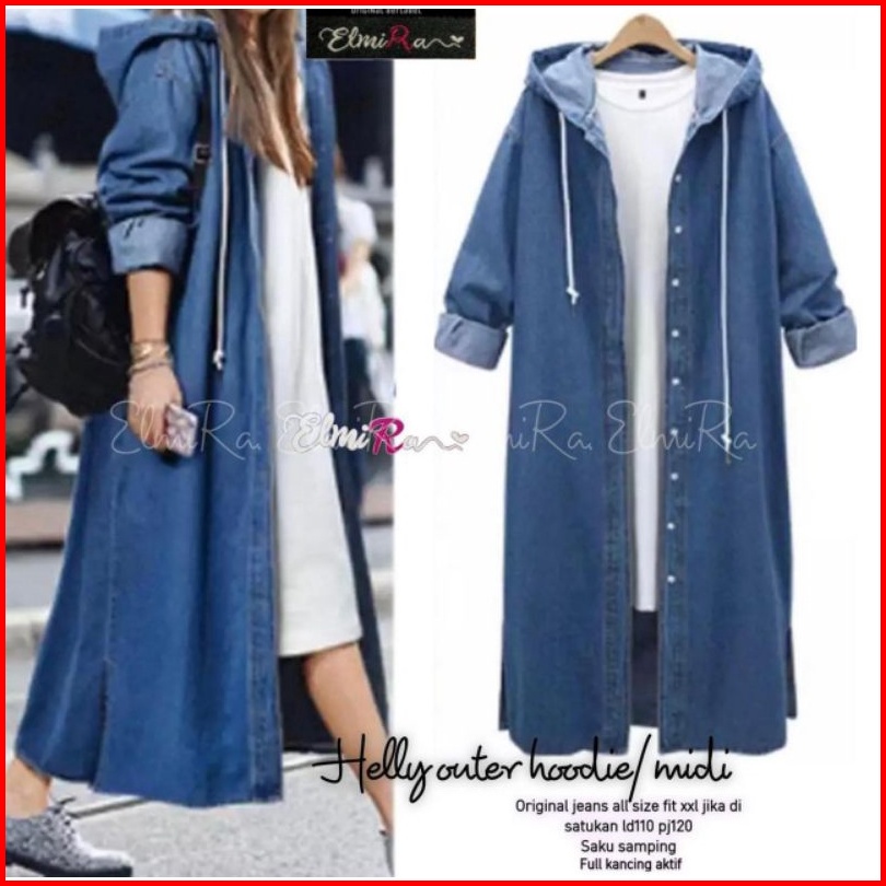 Melisa Long Cardy Outer Jeans Korean Style Helly Hallo Outer Hoodie Midi Ori Elmira Xoxo Parka Calvin Misca Ori Blazer J