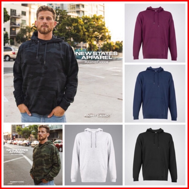 Jaket Hoodie Tanpa Risletting New States Apparel Super Blend Hooded Sweatshirt 9500