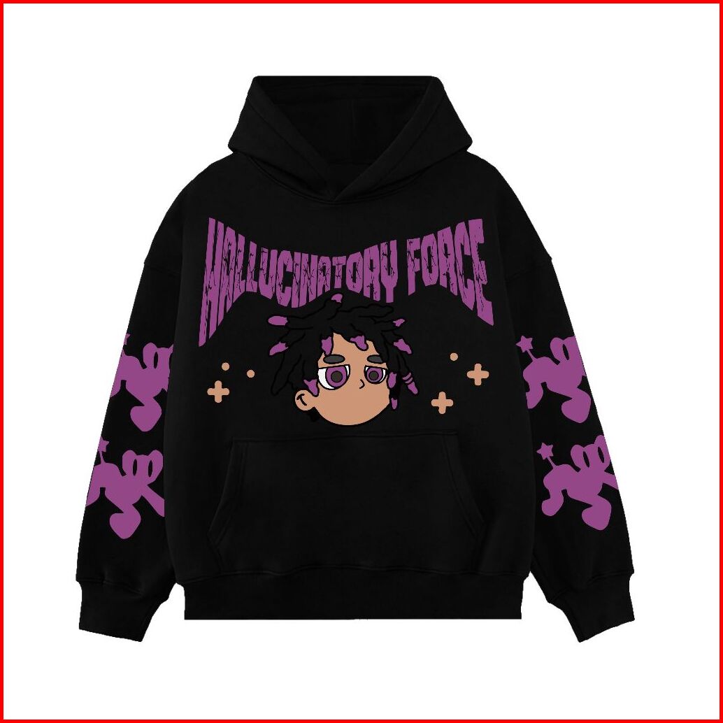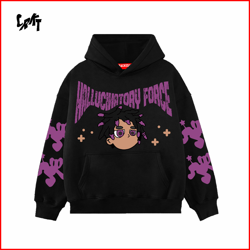 Crackedattic Fleece Hoodie Oversize Black Hallucinatory Force Hoodie Jemper Unisex Hitam
