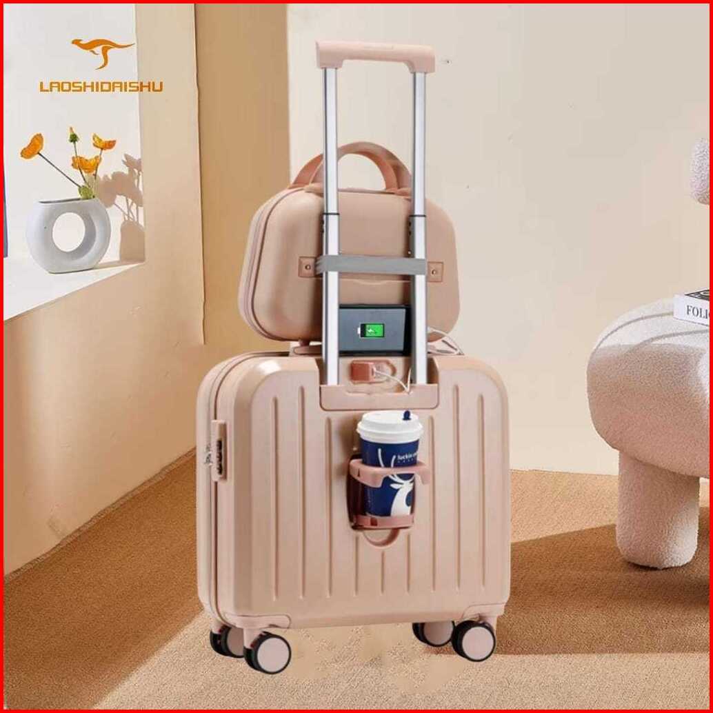 Laoshidaishu Koper Zipper Kapasitas Besar 18 Inch Stand Cup Usb Charger Koper Travel Modis
