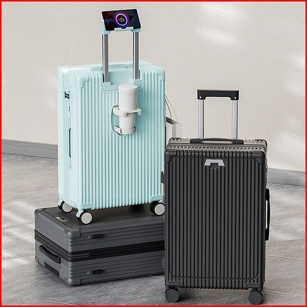 Three Sheep Network Koper Zipper Kapasitas Besar 20 24 Inch Bagasi Stand Cup Charger Usb Koper Terbaru 2024 - Kokoh Tren