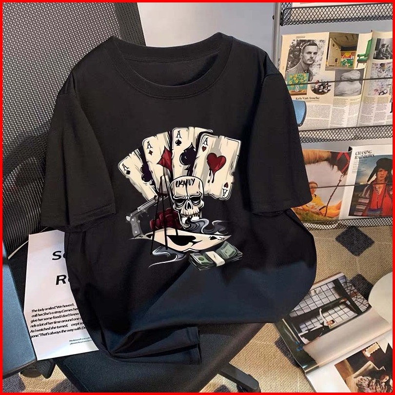 Ilustrasi Desain Tengkorak Poker Jalanan Kaos Pria Terbaru 2024 Kaos Cotton Combed 30s Kaos Cowok Distro Original 100 Ba