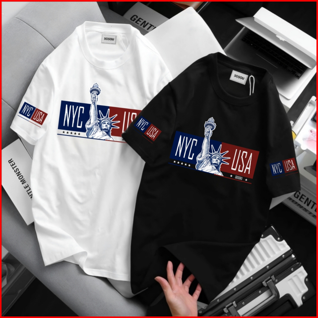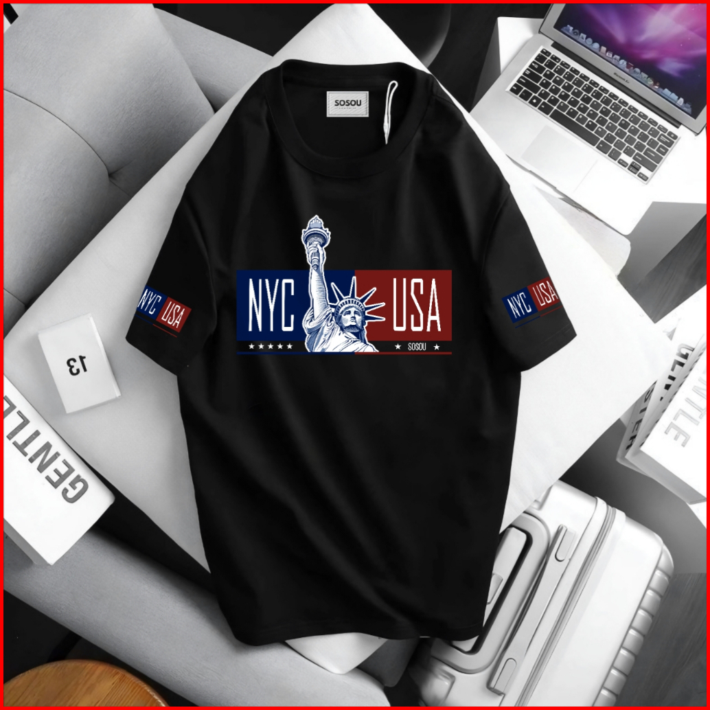 Sosou Kaos Distro Streetwear Nyc Usa Liberty Patung Kebebasan Tshirt Cotton 20s Regular Fit Unisex Fashion Pria Wanita K