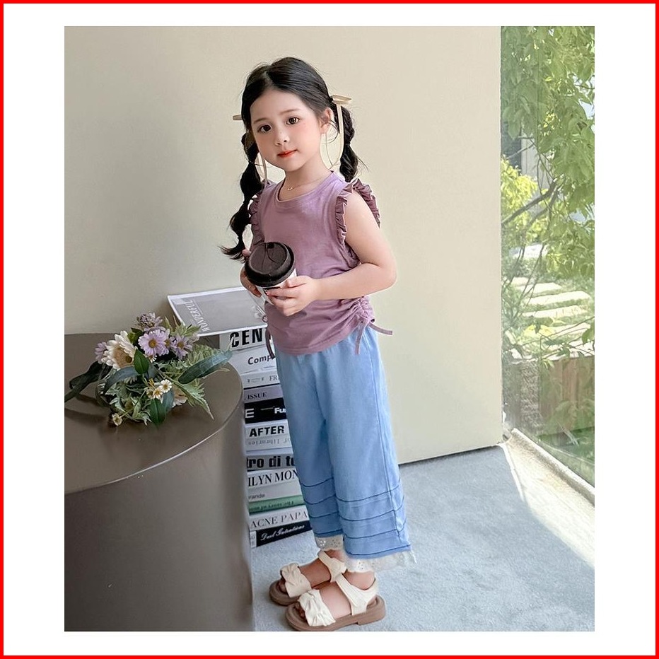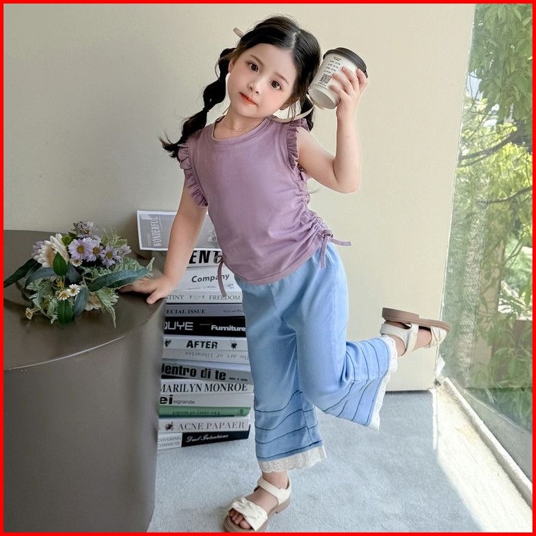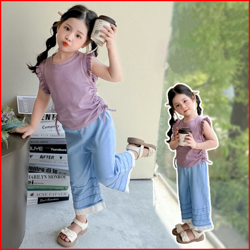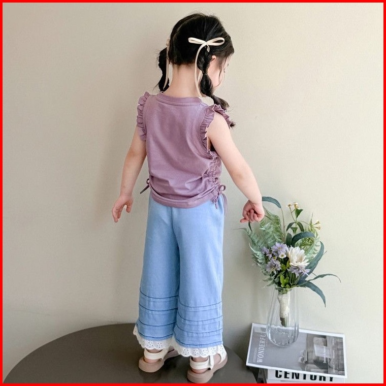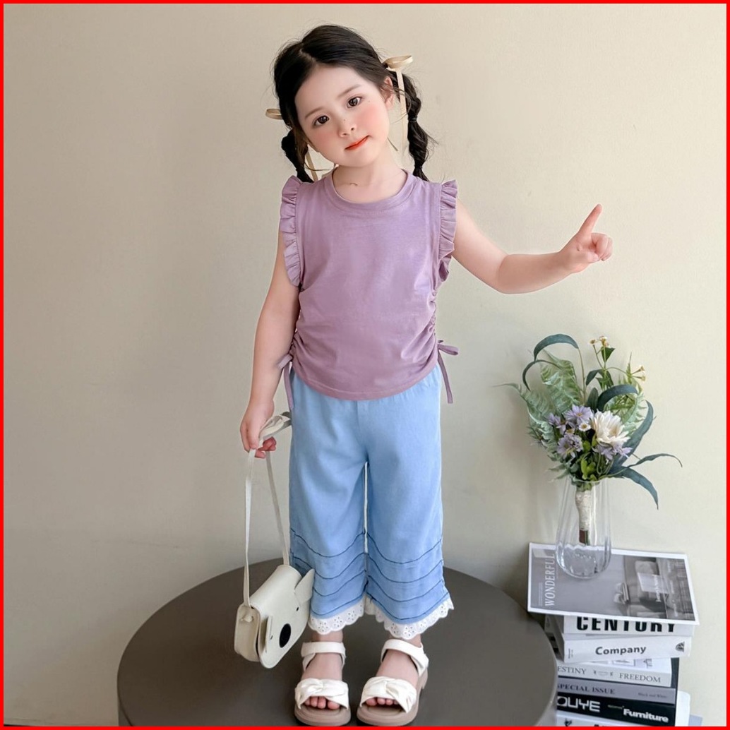 One Set Anak Cewek Setelan T-shirt Bahan Katun Celana Soft Jeans Anak Permpuan Set Anak Cewek Setelan Anak Perempuan Kor