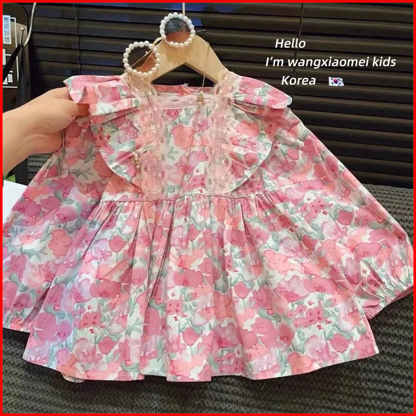 2-10tahun Setelan Jeans Bunga Pink Baju Anak Cewek Setcel Panjang Korean Style