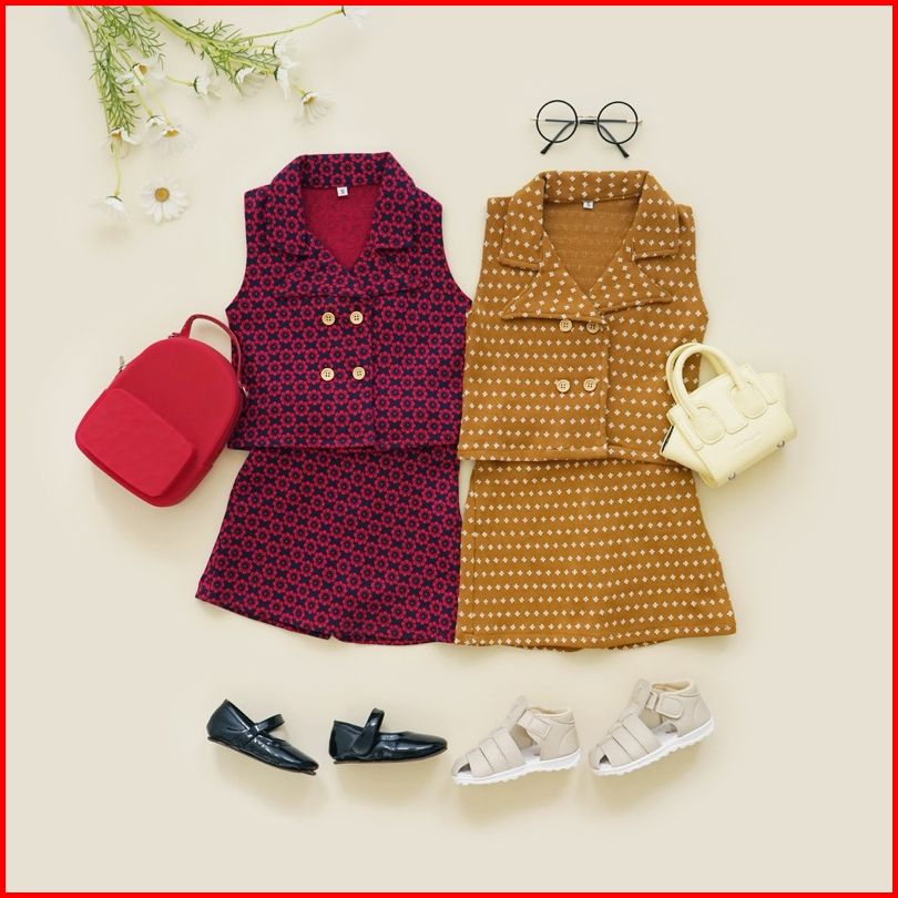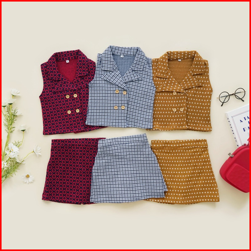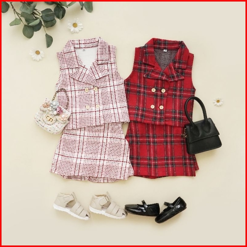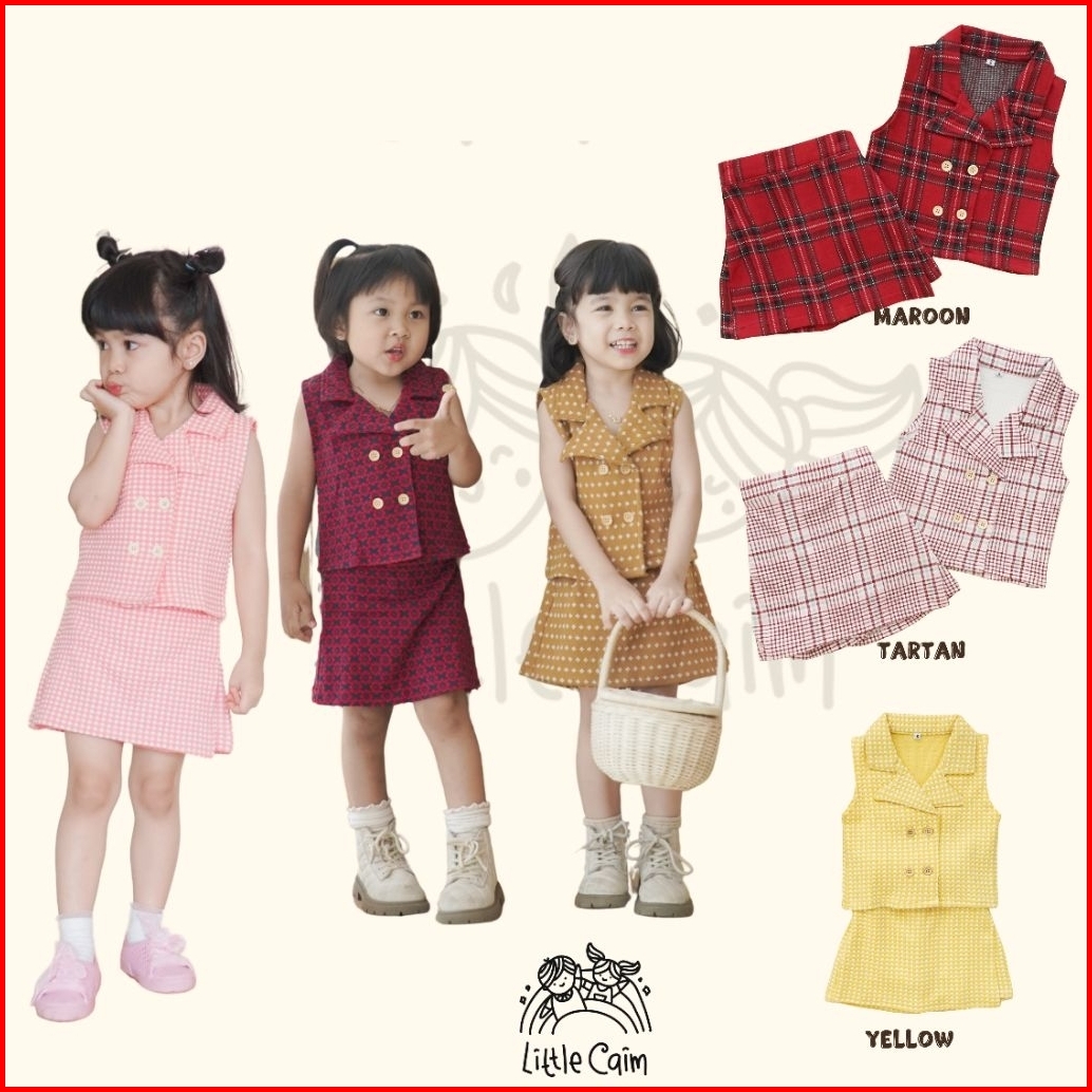 Little Caim - Clazy Skort Set Setelan Anak Perempuan Setelan Lengan Kutung Setelan Vest Anak Baju Anak Perempuan Baju An