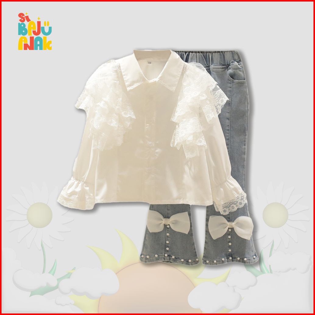 Si Baju Anak - Setelan Anak Perempuan 1-7 Tahun Set Blouse Renda Celana Jeans Cutbray - Bap-6
