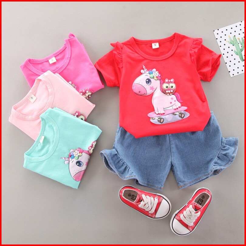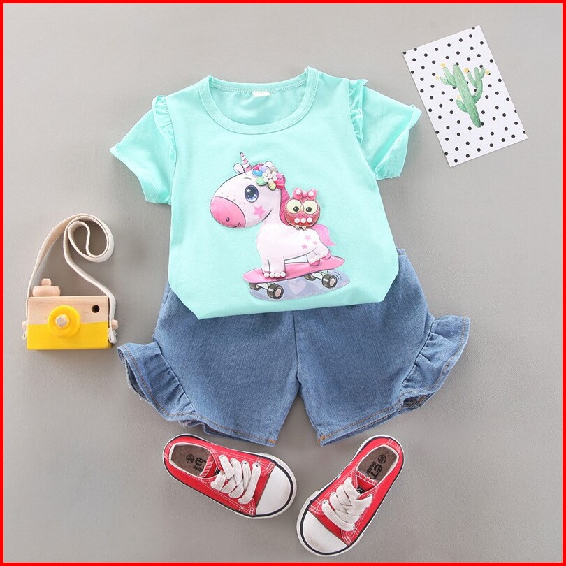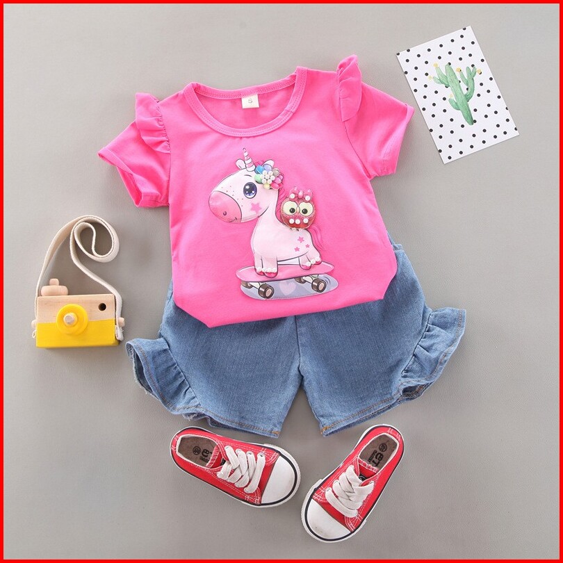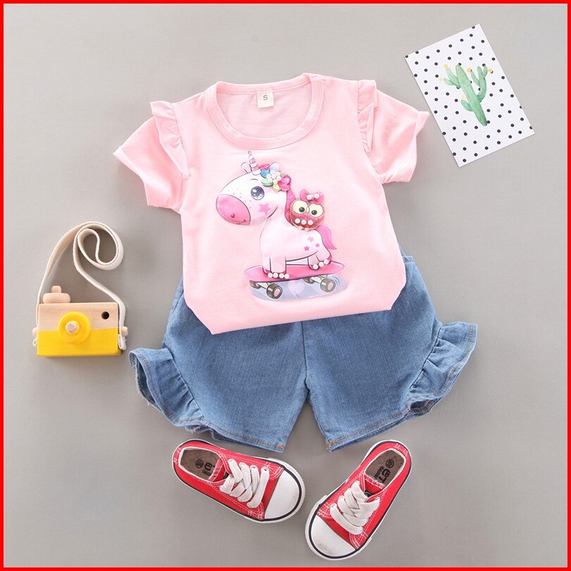 Setelan Baju Anak Perempuan Balita Import Set Kaos Anak Cewek Kualitas Premium Uni Owl Stlng16