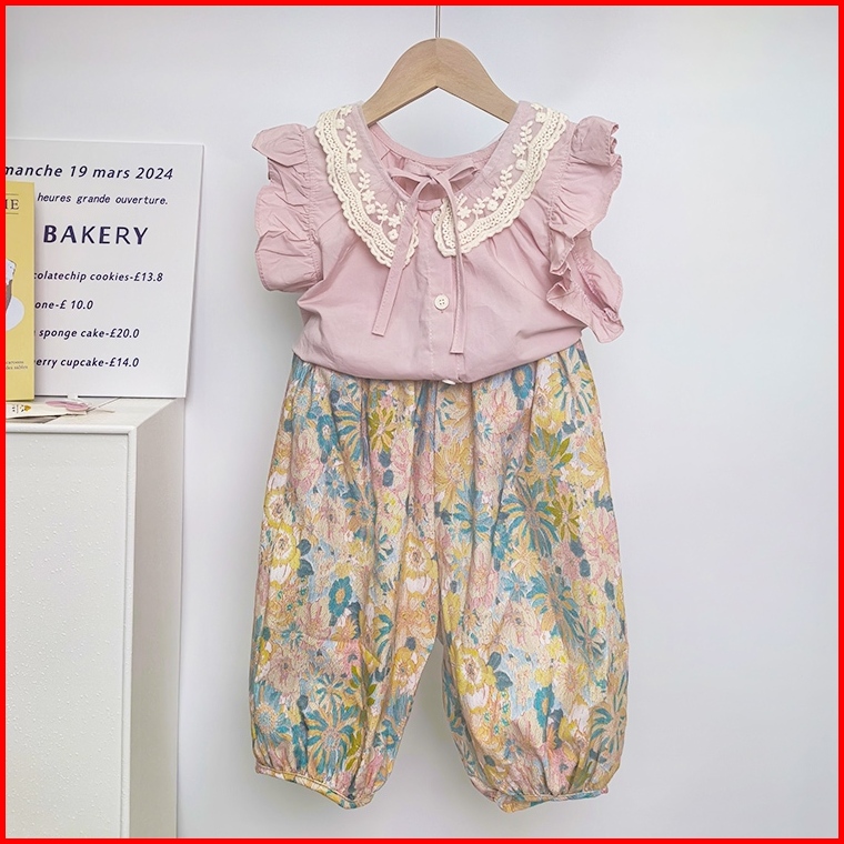 Setelan Anak Perempuan Gaya Korea Setelan Set Musim Panas Yang Lucu Dan Manis 1-7 Tahun Baju Anak Perempuan