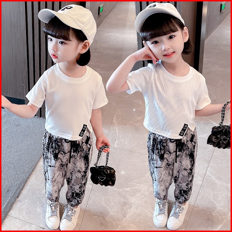 Setelan Anak Perempuan Celana Panjang Crop Top Korea Import Premium