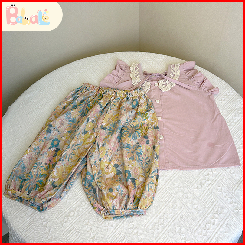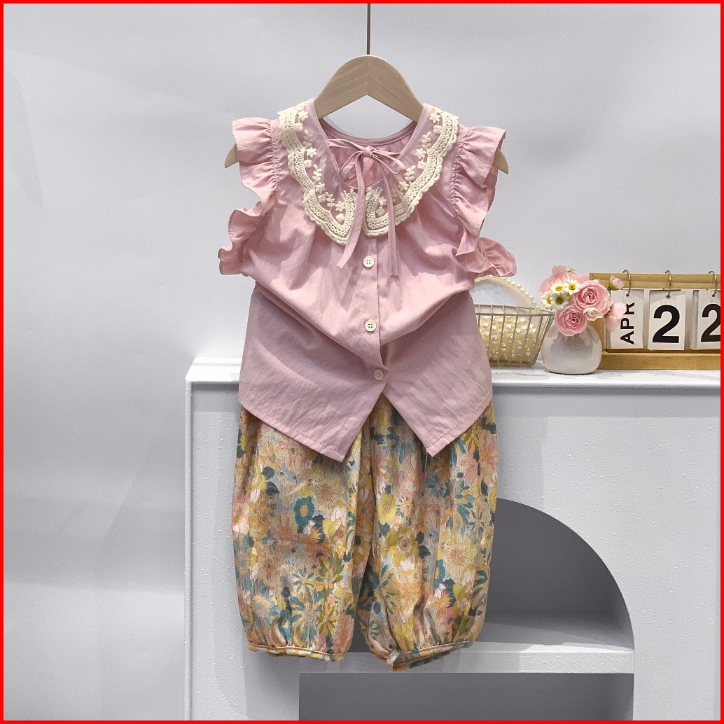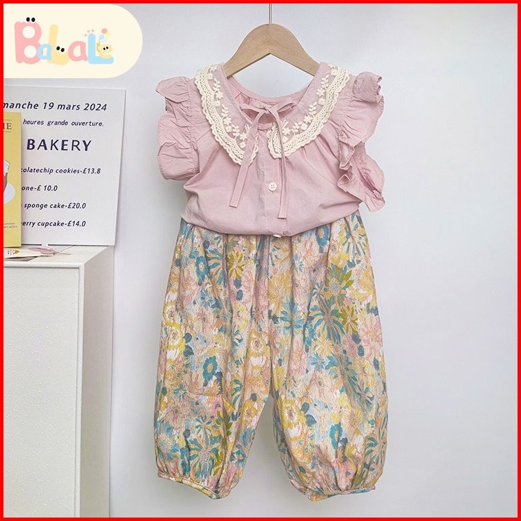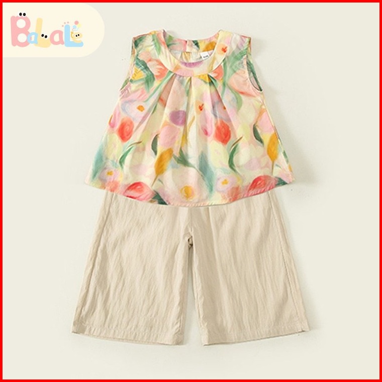 Setelan Anak Perempuan Gaya Korea Setelan Anak Atasan Tanpa Lengan Set Musim Panas Yang Lucu Dan Manis 1-7 Tahun