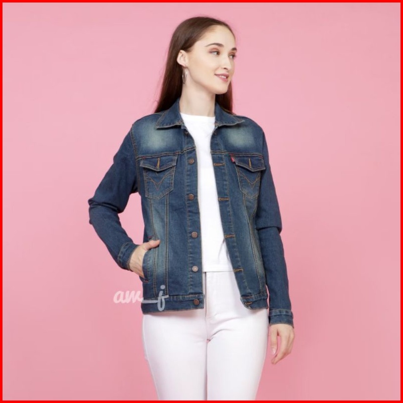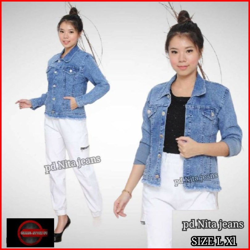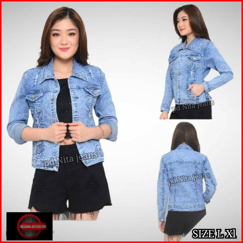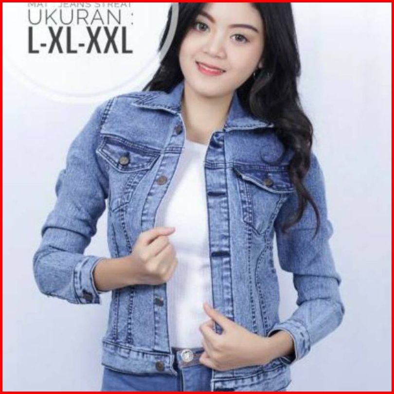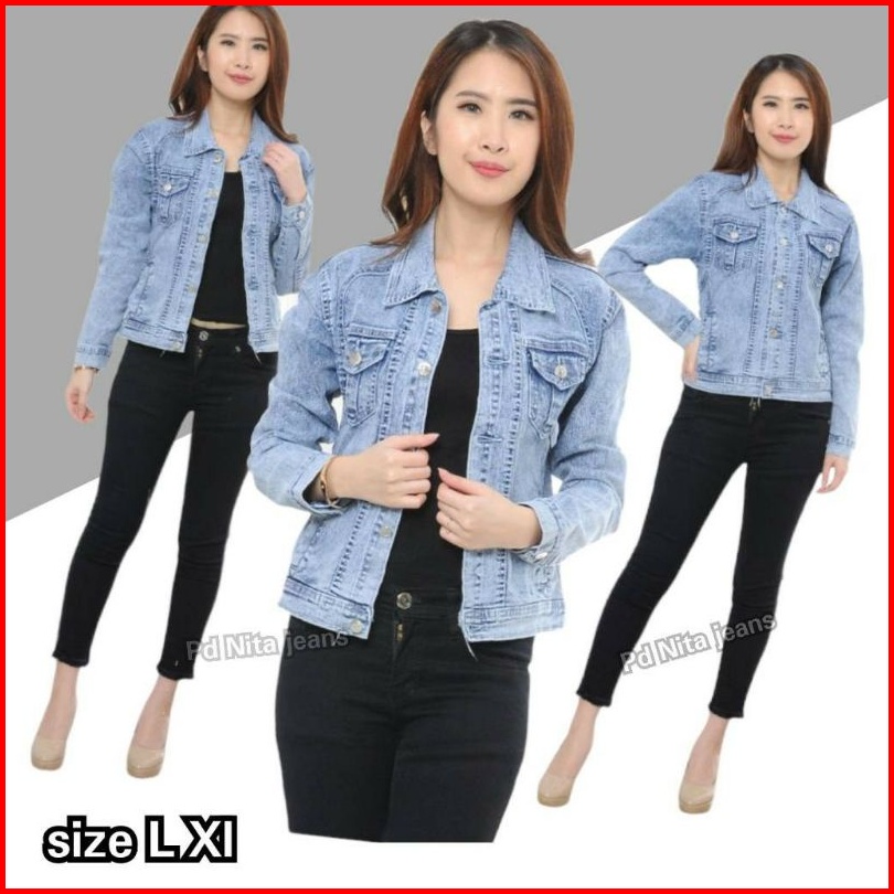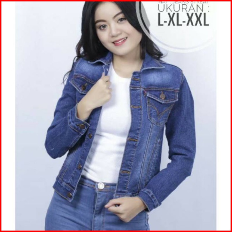 Jaket Jeans Wanita Motif Denim Ukuran M-xl