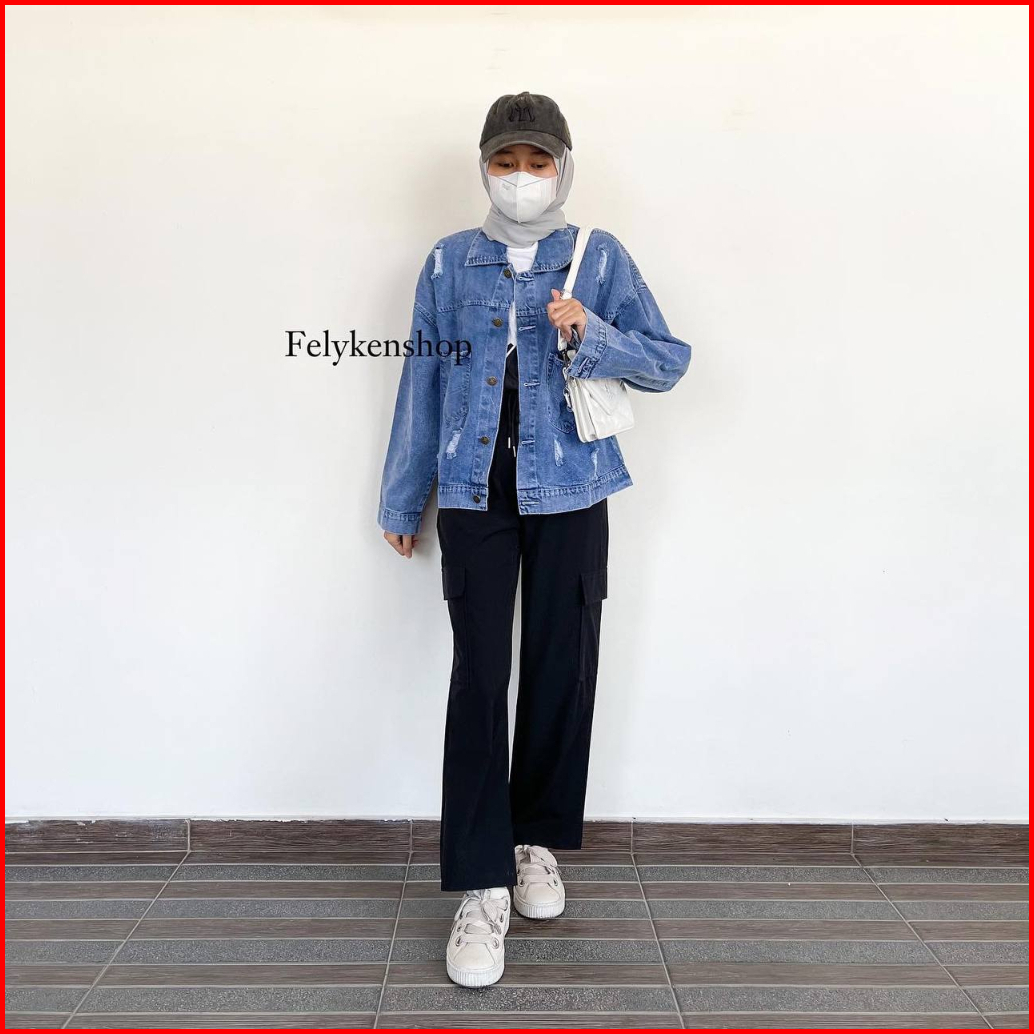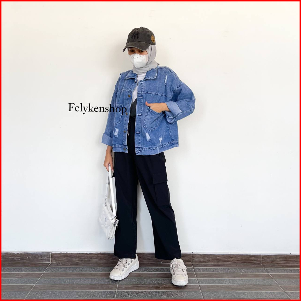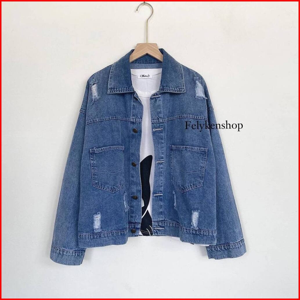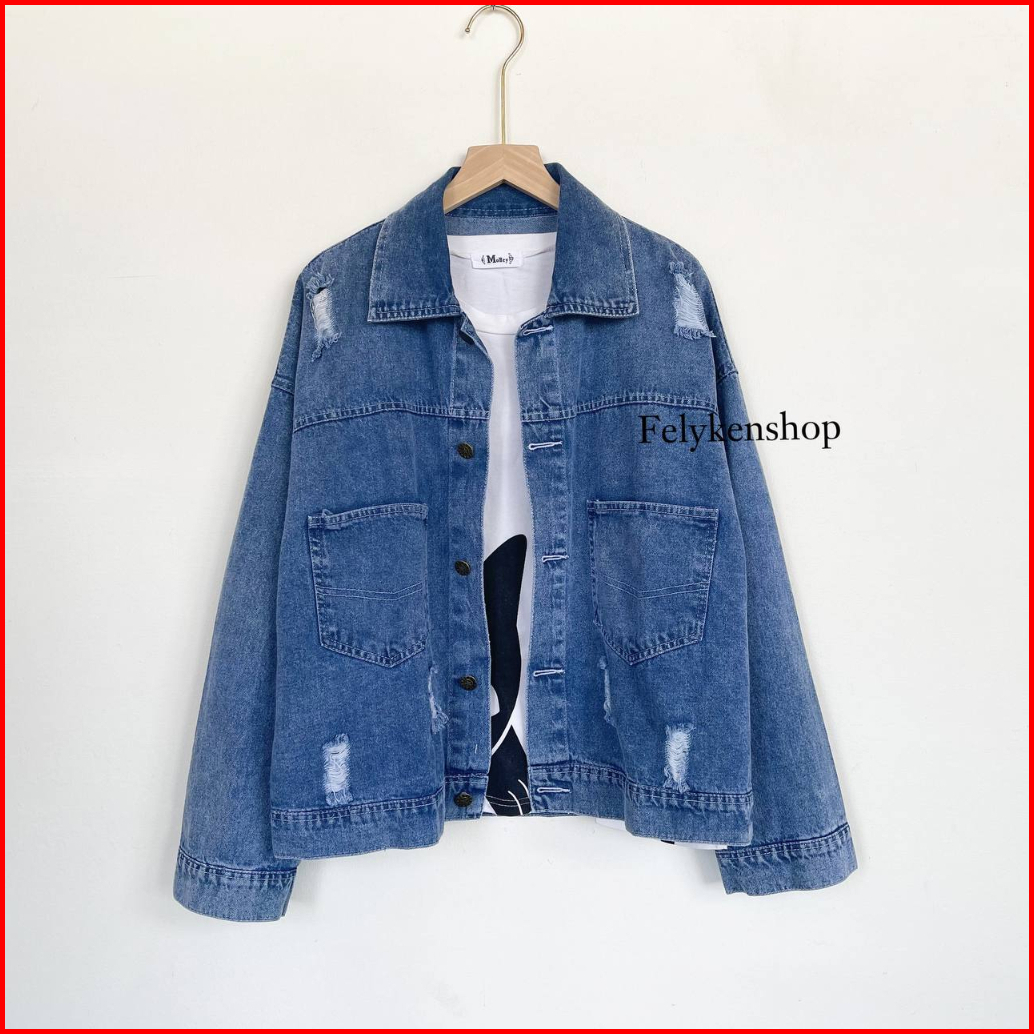 Oversize Jacket Ripped Jeans Kode Mp 221 Jaket Wanita Jaket Robek Unisex