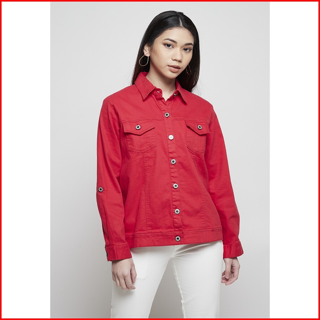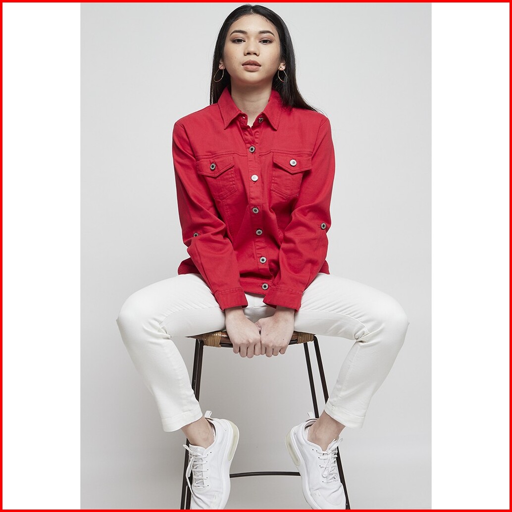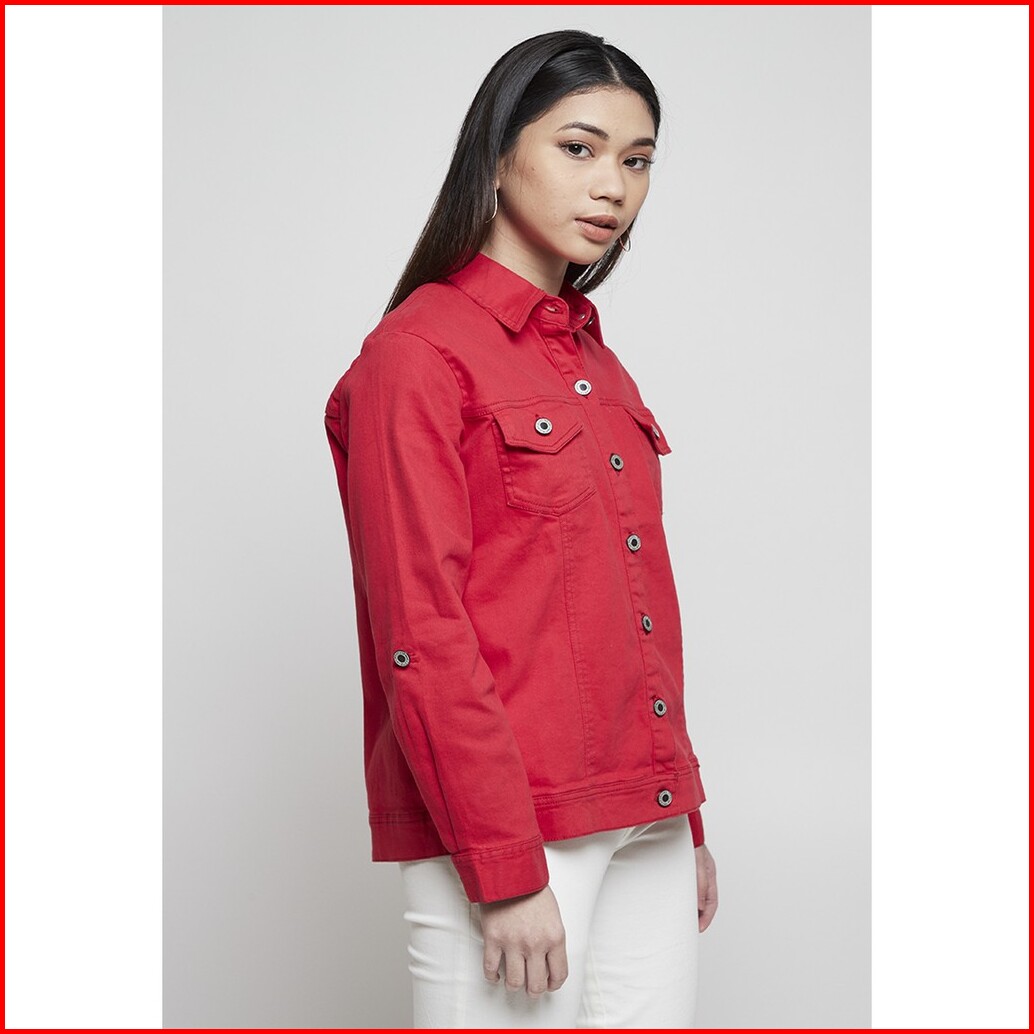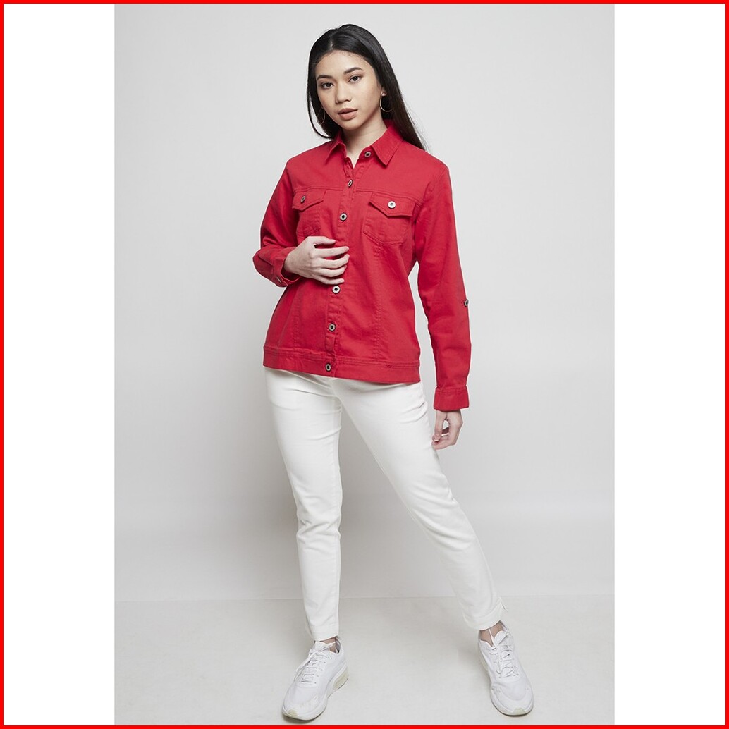 Ihang Soft Denim Jacket Red Jaket Jeans Wanita