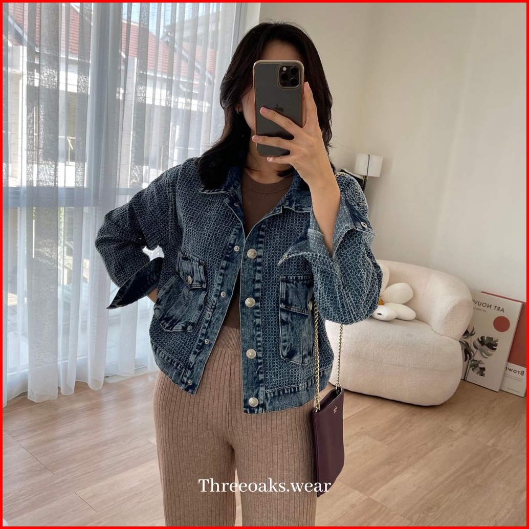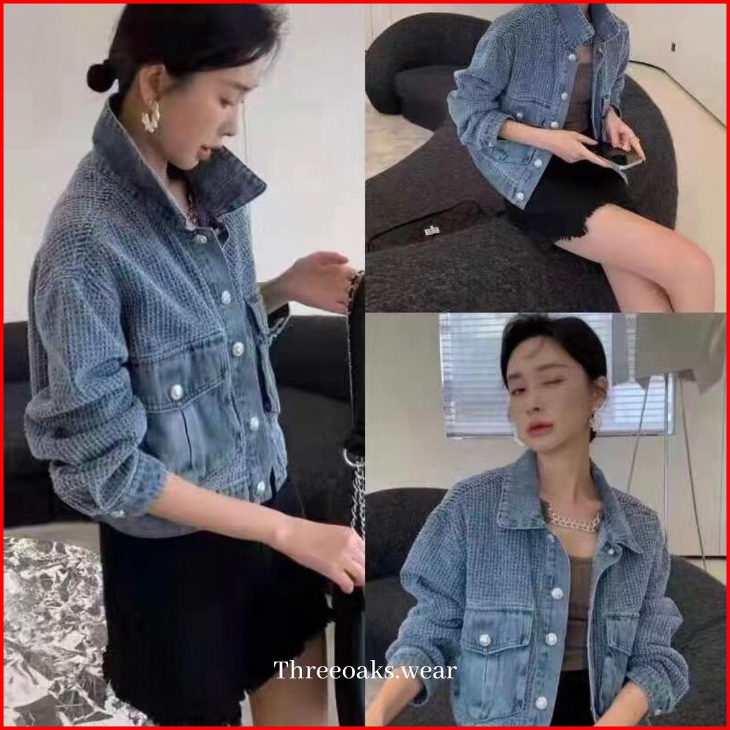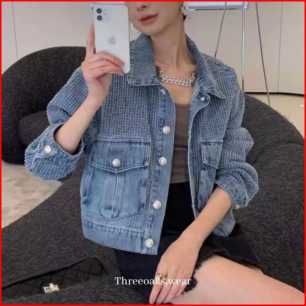 Jennie Jean Jaket Premium Impor Dengan Motif Unik Dan Kancing Cakep Korean Style Jennie Black Pink