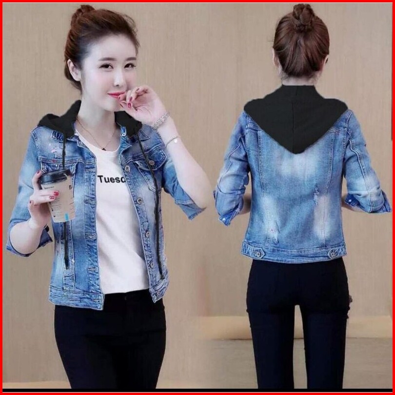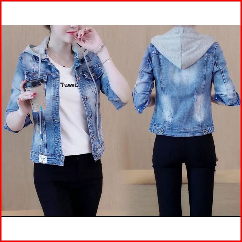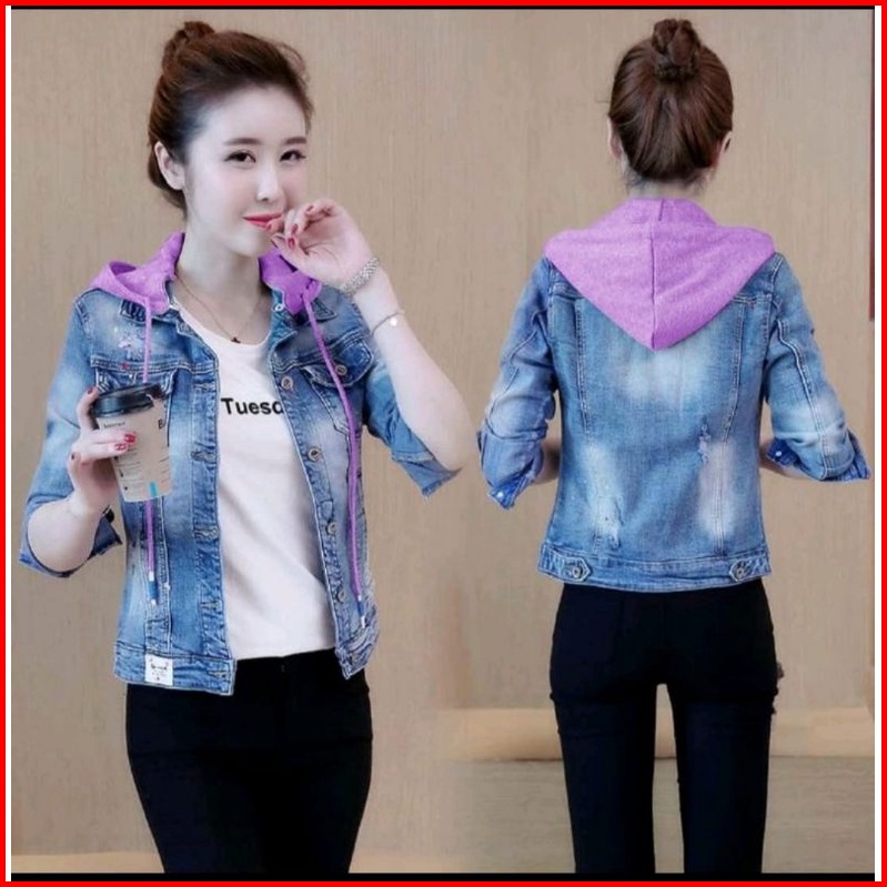 Jm Collection88 Jaket Jeans Hoodie Wanita