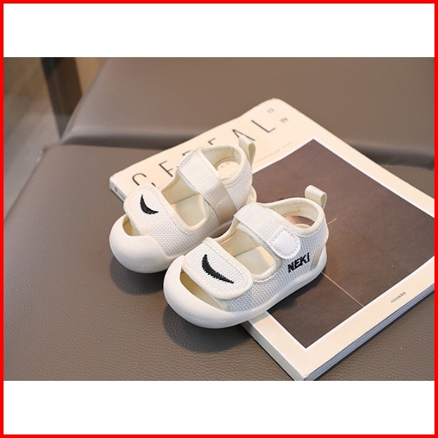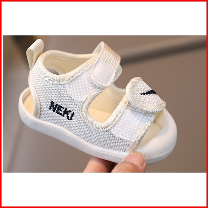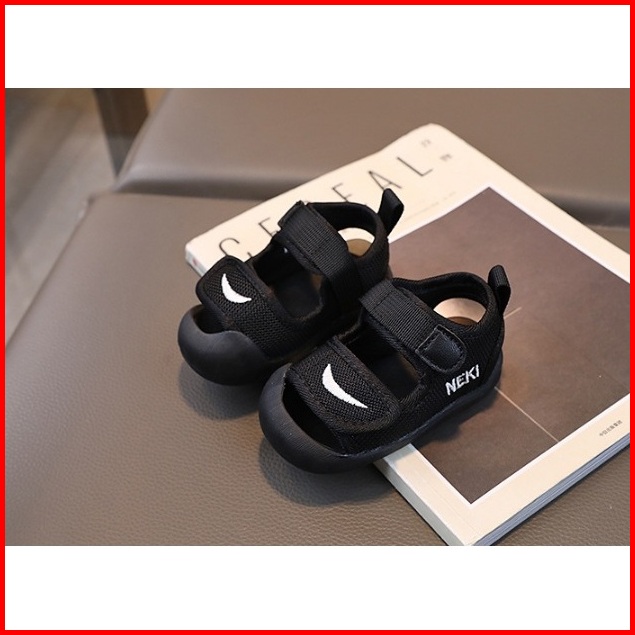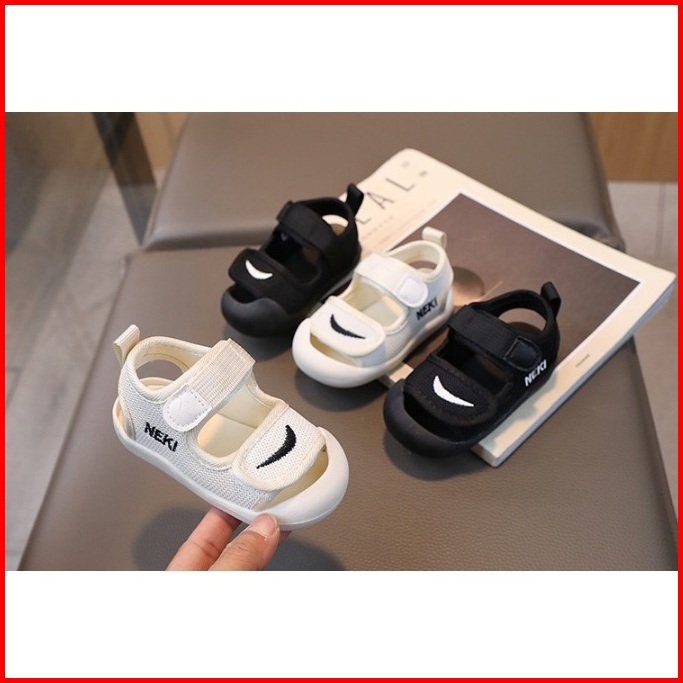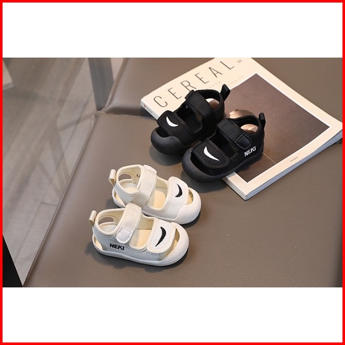 Sandal Anak Unisex Import Neki Black White Bahan Lembut Nyaman Dipakai 15-25
