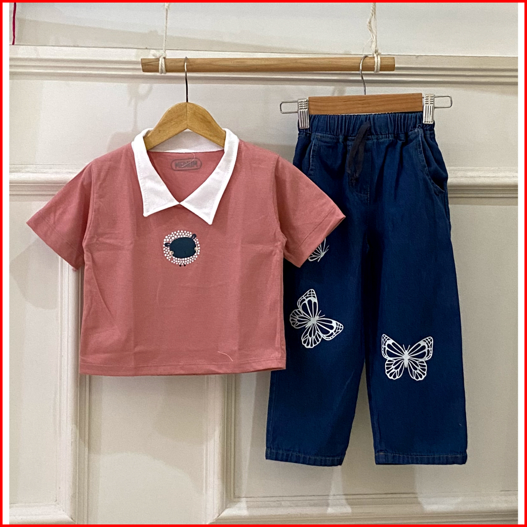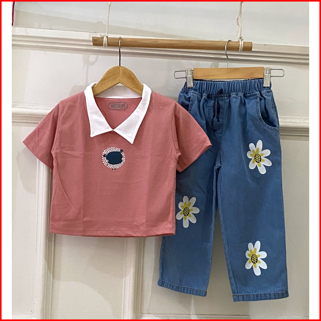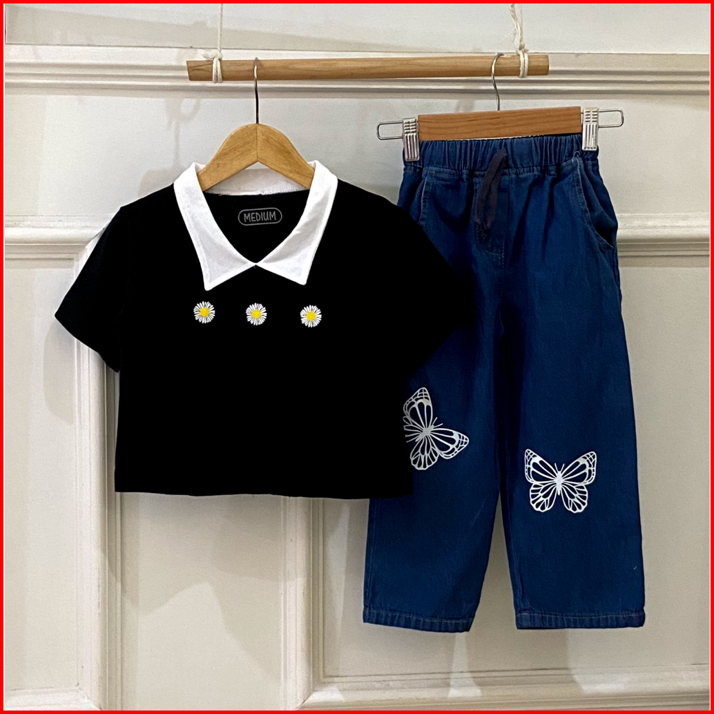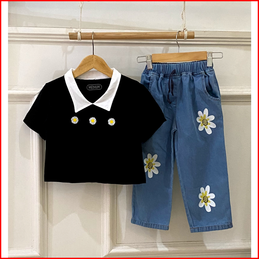 Setelan Baju Anak Perempun Krop Top Usioa 3-12 Tahun Kaos Crop Anak Perempuan Terbaru
